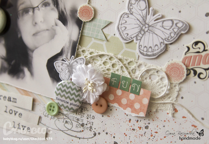 Материалы: бумага ММЕ, наклейки Еcho Park, пуговки October Afternoon, фишки Creative Creations, цветы Prima, кружево Scrapberry's, штампы и ножи Sizzix, чернила VersaFine, салфетка, акварель, шнурок, ключик.