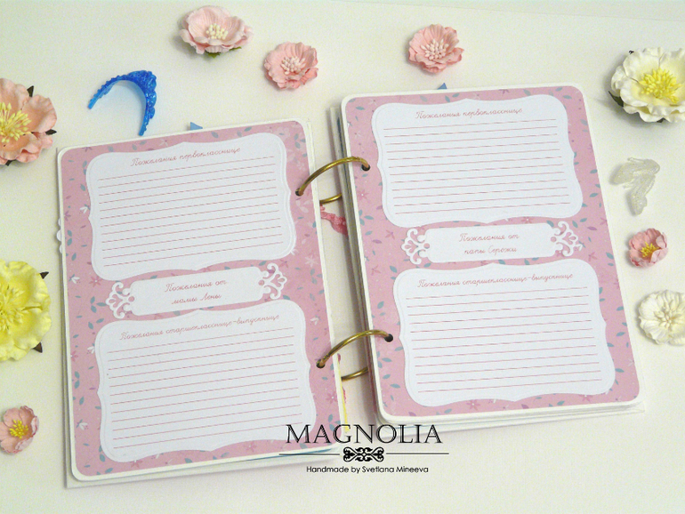 Книги пожеланий, чековые книжки, книжки желаний, кулинарные книгиВсем привет! Сегодня покажу одну из последних работ - книга пожеланий для девочки на 1 сентября. Формат А5, на кольцах с местом для фото на обложке (7,5*10 см)