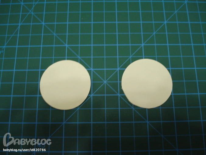 Из салатовой бумаги вырезаем 2 одинаковых круга, потом вырезем серединку, чтобы вышло два одинаковых кольца из которых мы будем делать рамочку для «окошка»