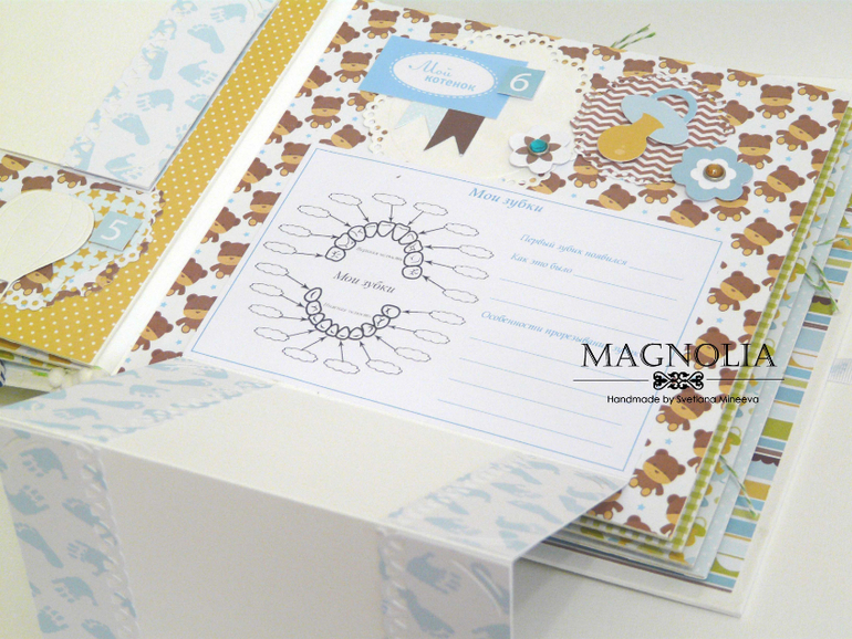 В альбоме предусмотрены карманы для фото узи, бирочки, локона, поля для записи данных по месяцам, достижений за год, веса и роста, зубок, карточки для обводки ножки и ладошки, карточка с данными при рождении.Короче классика жанра))))
