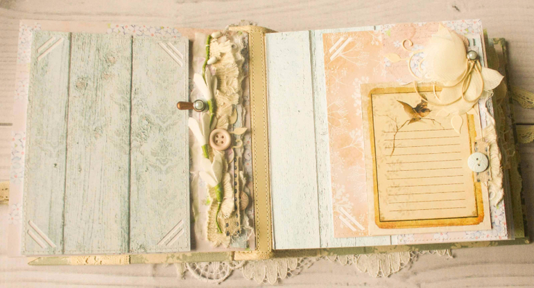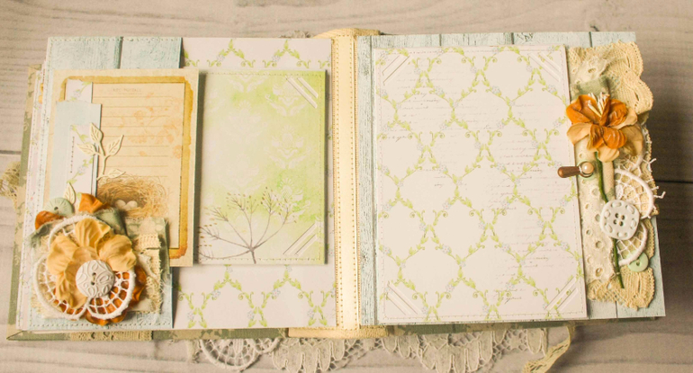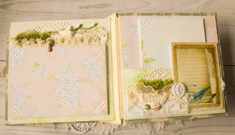 Нежный альбомчик получился. Очень переплет понравился, ну и детальки тоже, интересно разглядывать.