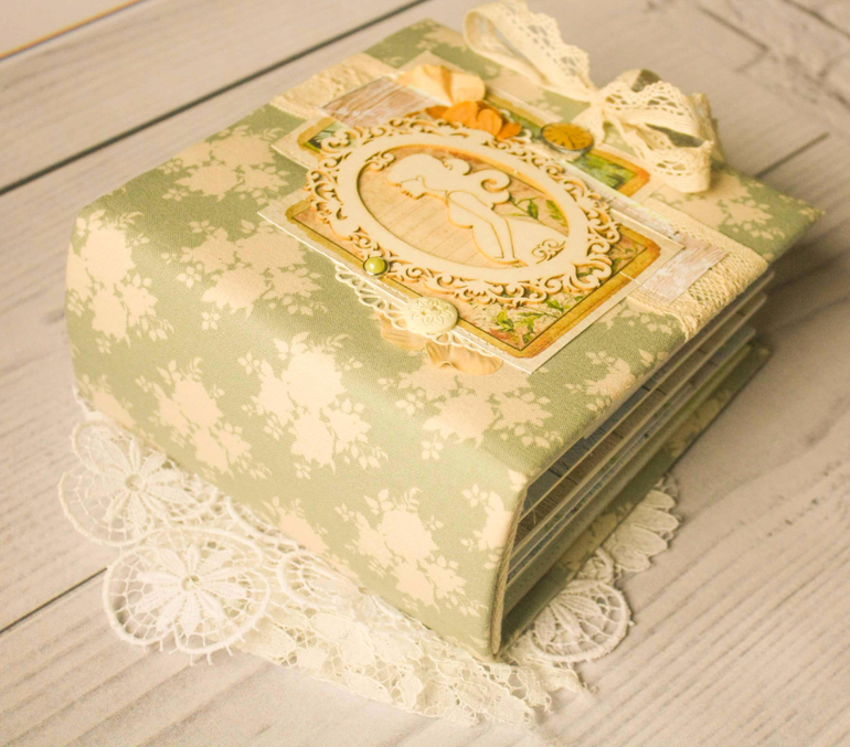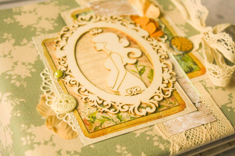 Заказчица еще не знала пол ребенка, поэтому просила сделать альбомчик универсальной расцветки, но чтобы обязательно был нежным. А каким же еще может быть альбом для фотографий такого замечательного времени - ожидании малыша!