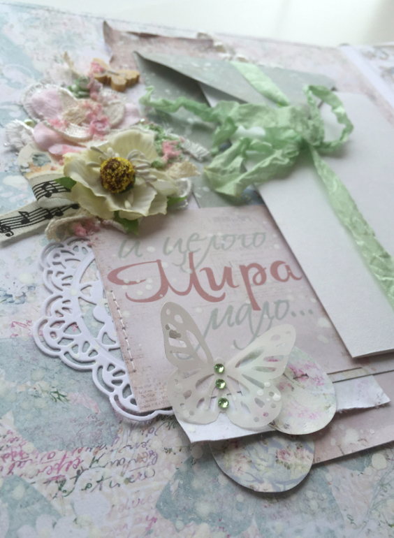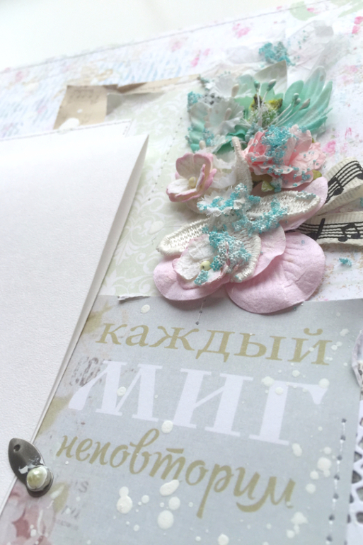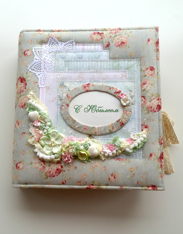 Фотоальбом ручной работы "С юбилеем" был выполнен на заказ для одной замечательной девушки, которая подарит его своей крестной. Альбом пронизан цветочным настроением и нотами музыки.