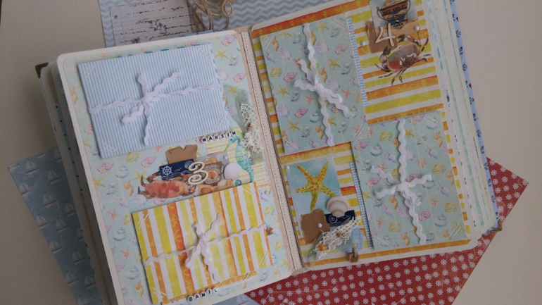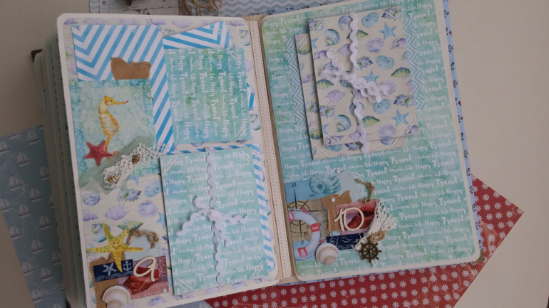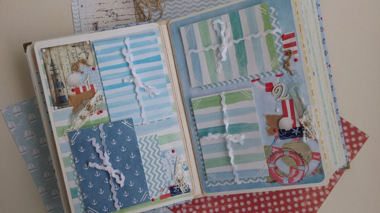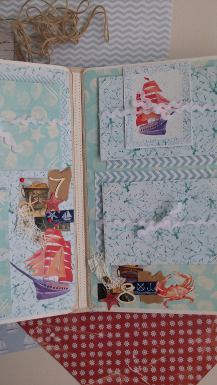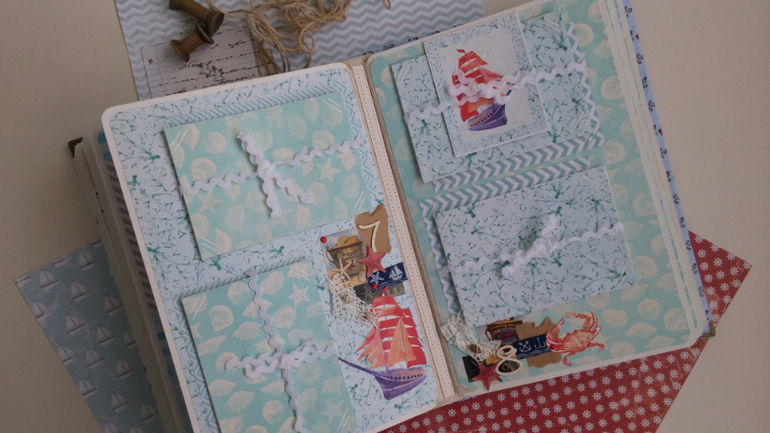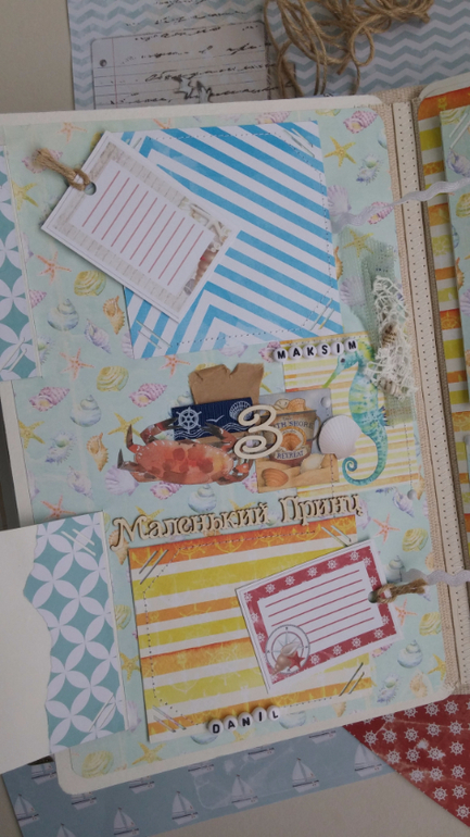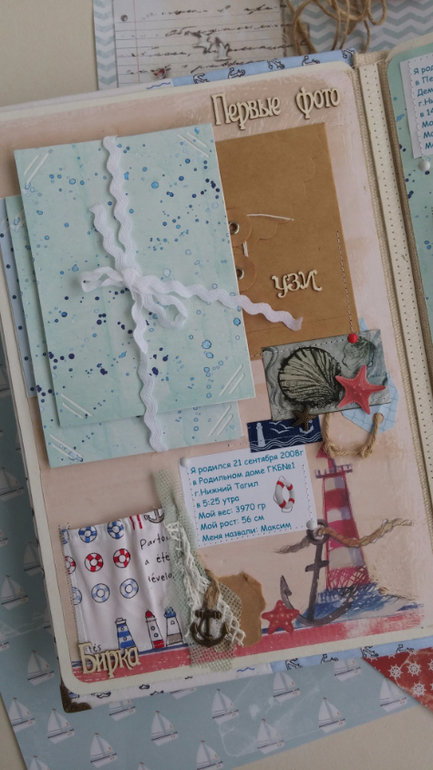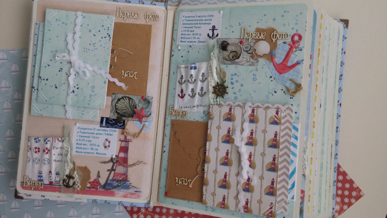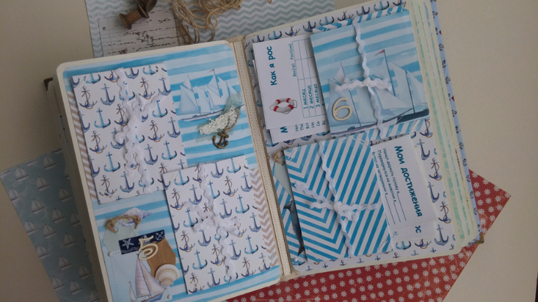 Альбомы ДетскиеА я и рада,что снова заказ на альбом в морском стиле,как-то так легко,быстро и с настроением он вырезается-шьется-клеится. Прям люблю морскую тему.Может быть скоро поступит заказ на взрослый travel альбом,чтобы я уже оторвалась по полной)