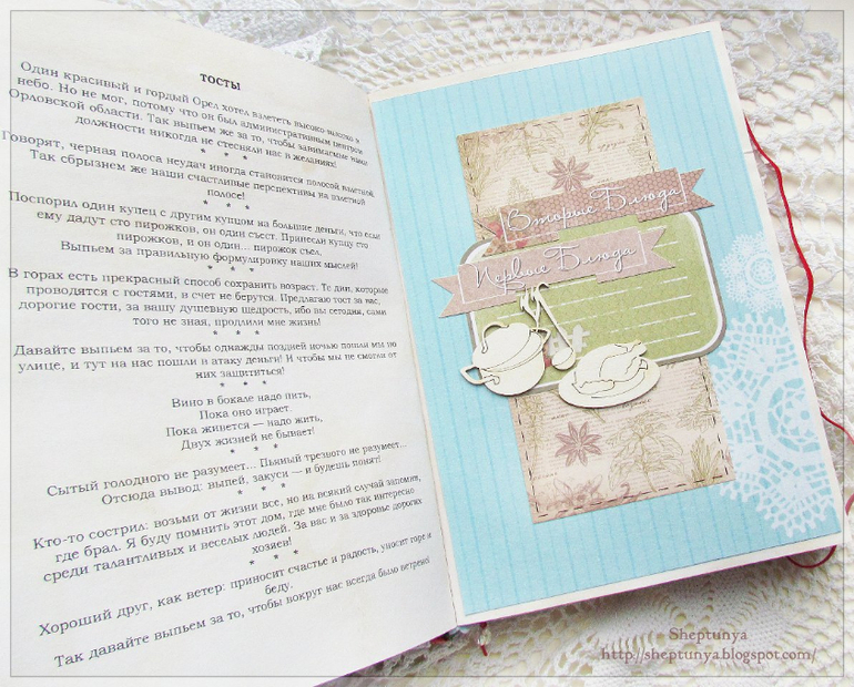 Меня восхитили досточка,вилка и книга рецептов на обложке:))) и внутри очень миленько:))