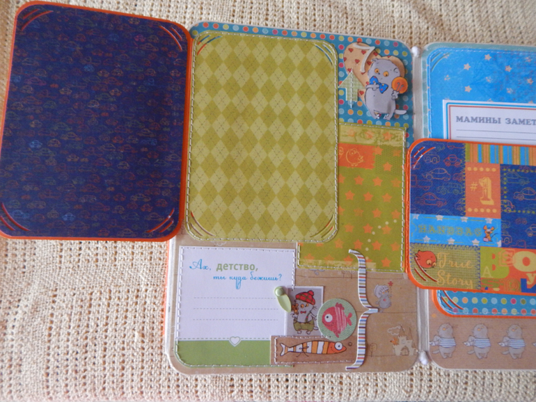 Альбомы ДетскиеПривет всем) опять после большого перерыва показываю свой альбомчик)Давно хотела опробовать бумагу с Басиком, все делают, а я рыжая что ли)))Итак малыш чуть больше А5,сделан из 2 коллекций бумаги с котейкой,16 страничек,много секретиков,вместил 65 фото 9х13)прошу к просмотру))