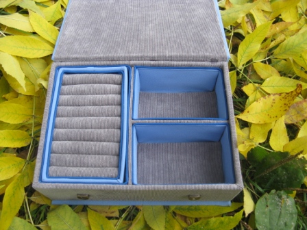 В этот раз чуть "усовершенствовала" отделение для колец. Вместо паралона использовала бигуди из Фикс-Прайса. Результатом более чем довольна.