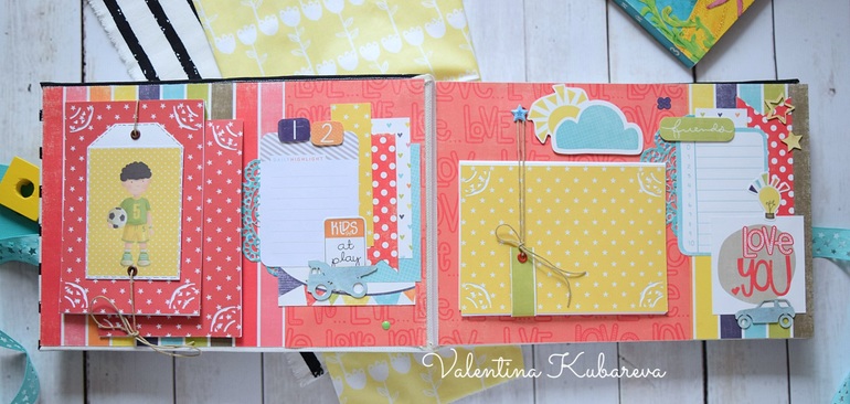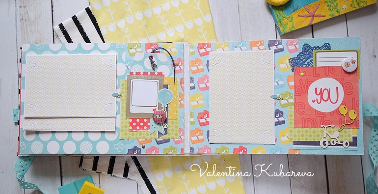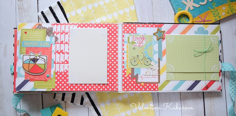 Ладно, это все лирика. Теперь альбом: Формат А4, 4 разворота. Обложка из плотного хлопка, уже не помню Daily like ли это.. Бумага от Echo Park.