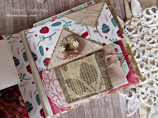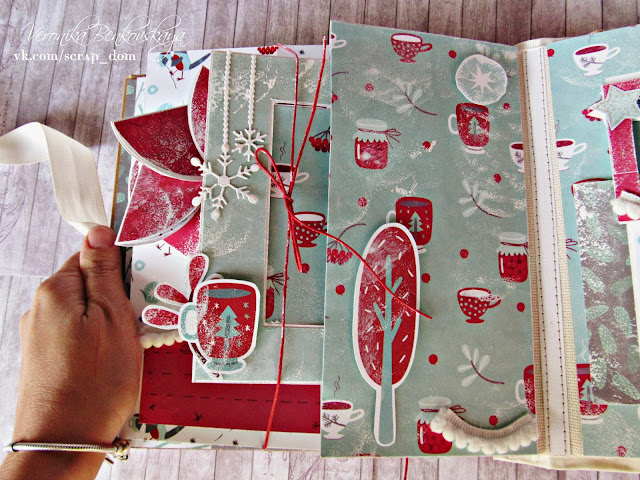 Именно поэтому я на первом развороте объемная композиция, которая появляется неожиданно, словно по волшебству.Она у меня получилась достаточно внушительная.