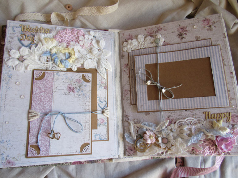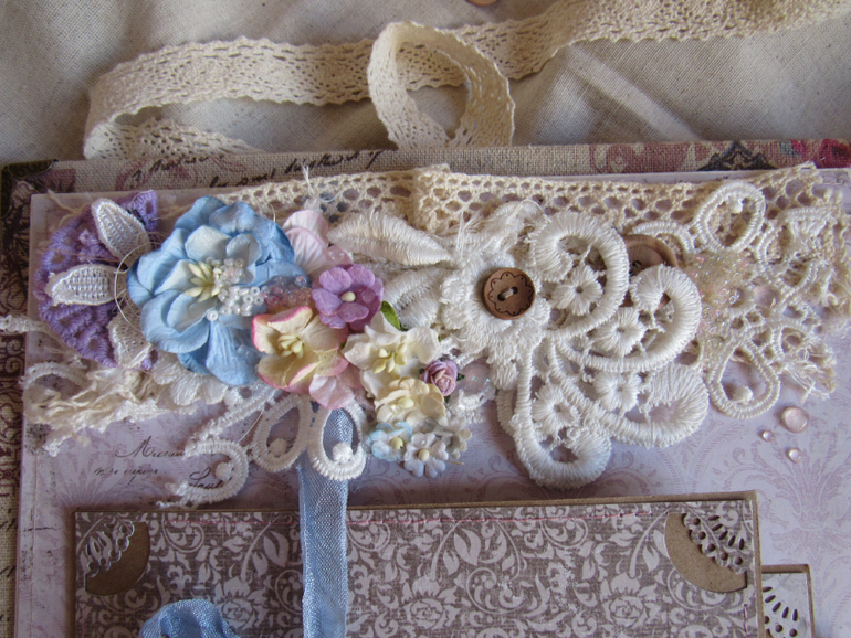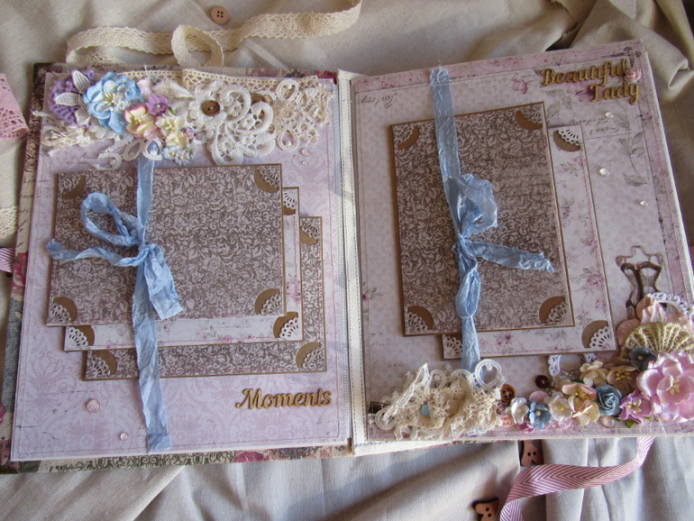 Альбом из прекрасной Майя Дизайн с кучей кружев, текстиля, цветов, чипбордовых надписей))