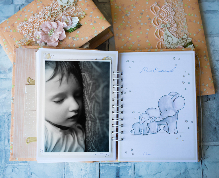 Бебибук от 0 до 6 лет. С местом для фото, записи по месяцам и годам, о днях рождениях, о садике и школе , рост зубиков и развитие.