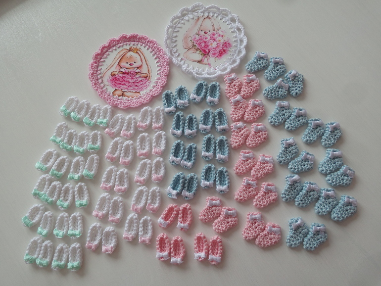 6. Вязанные носочки,пинеточки и салфеточки. За все 450р.