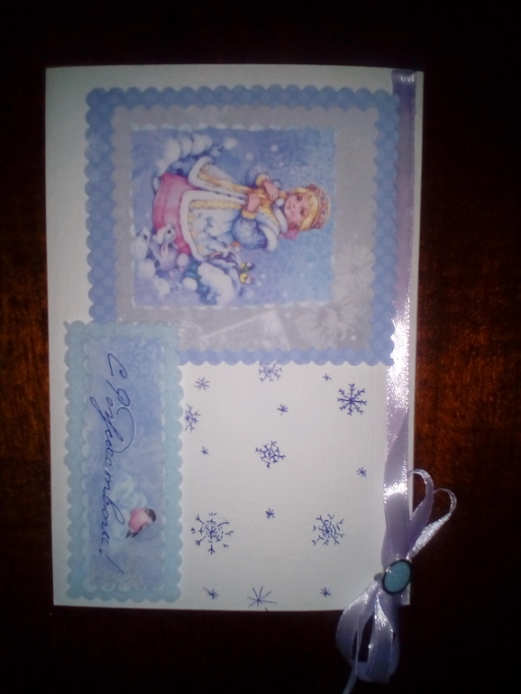 А вот над открытками надо поработать. Не знаю, о какой ярмарке идёт речь, но скрап у нас в городе представлен неплохо: Марина Сыскова, Настя Кузнецова (они, правда, на ярмарки не ходят), Аня Дмитриева, Юля Толстова и др. Они давно в скрапе, опыта у них побольше, открытки более профессионально выполнены. Вы только не обижайтесь. Просто на фоне шара такие открытки будут смотреться простовато.