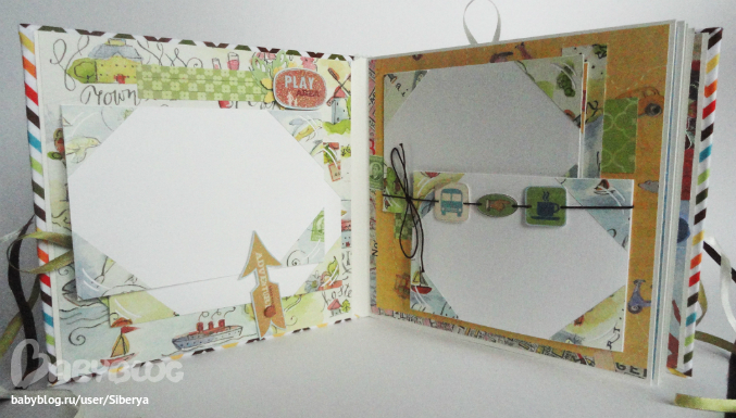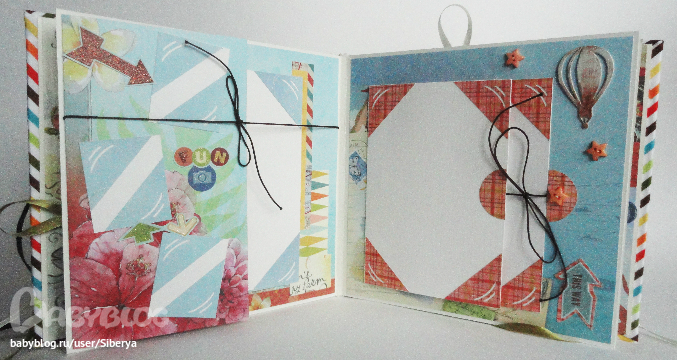 Альбом для фотографий из путешествия. Размер 20х20 (давно у меня таких малышей не было), переплет Виноградовой, бумага K&Co. Украшений минимум)) 5 разворотов, все с книжечками, есть тэги для записей ( я их стилизовала картинками с поездами-самолетами )