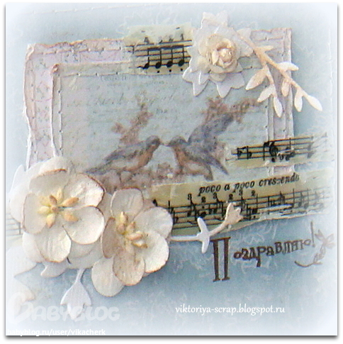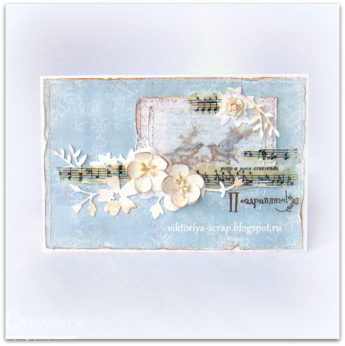 Итак, открытка "Птички-невелички". Сделала ее по заданиям пары челенджей (кому интересено, смотрите , в моем рукодельном блоге). Открытка выполнена в стиле шебби-шик. Может быть приурочена любому весеннему празднику: будь то день рождения или Пасха...