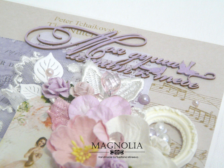 Одна из них - это открыточка. Что-то нашло на меня, увидела задание в блоге Scrapberry's с коллекцией бумаги Балет и подумал, пока в декрете, может позаниматься, а то с работой вечно было не до заданий и блогов. А вдруг подсяду и понравится ) В общем в итоге у меня получилась открытка на балетную тему в моем любимом сиреневом цвете. Открыточка в наличии и ищет хозяина :)