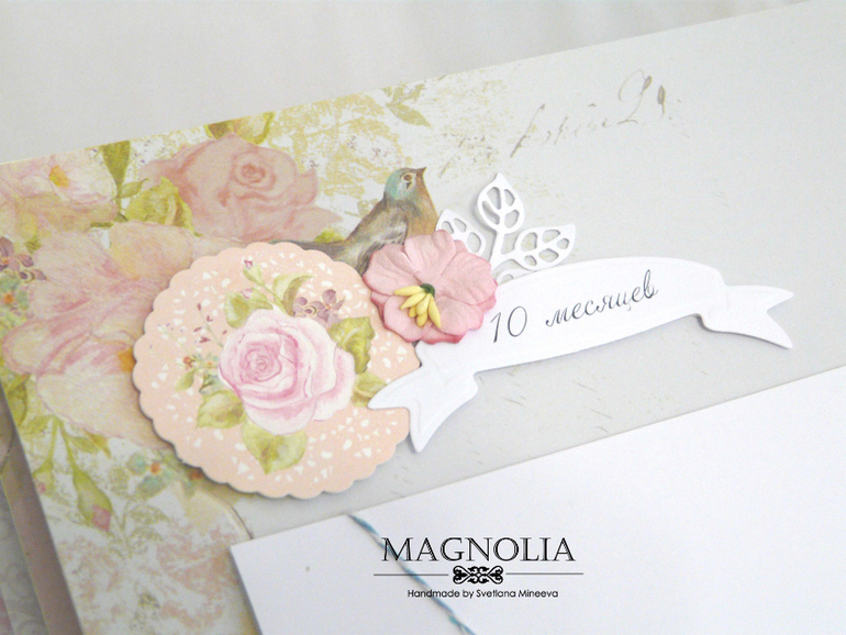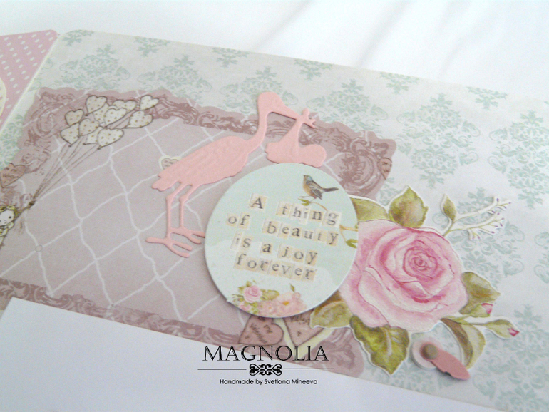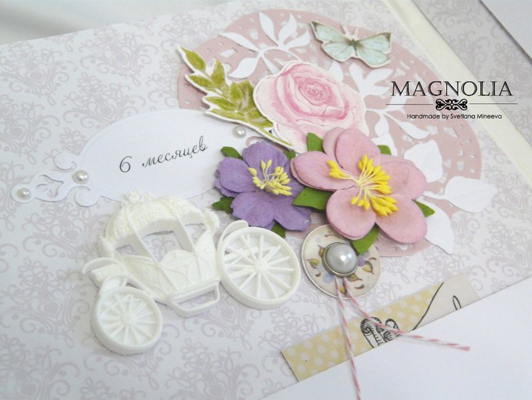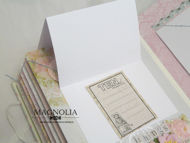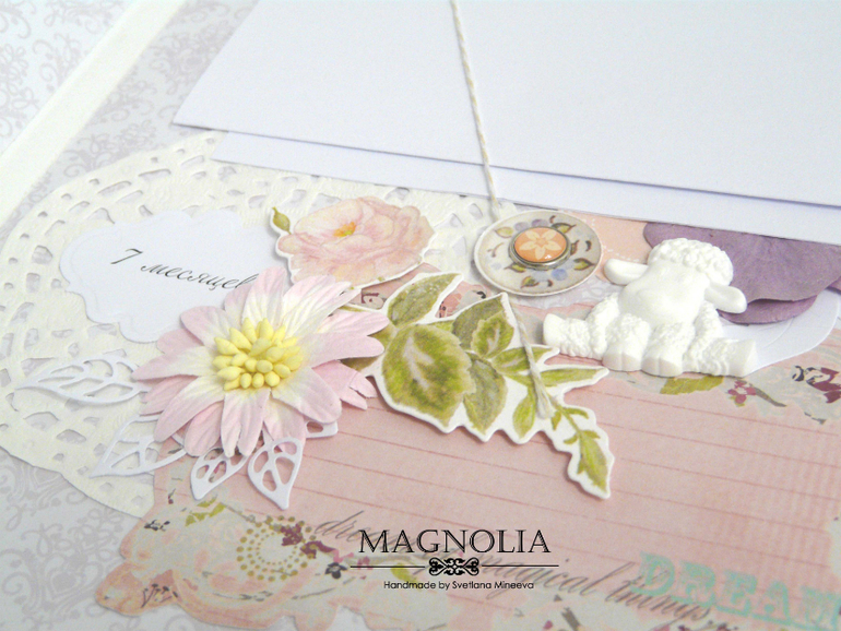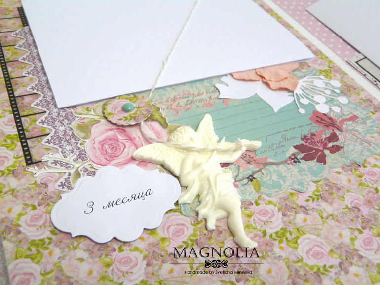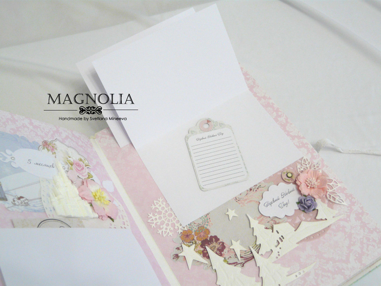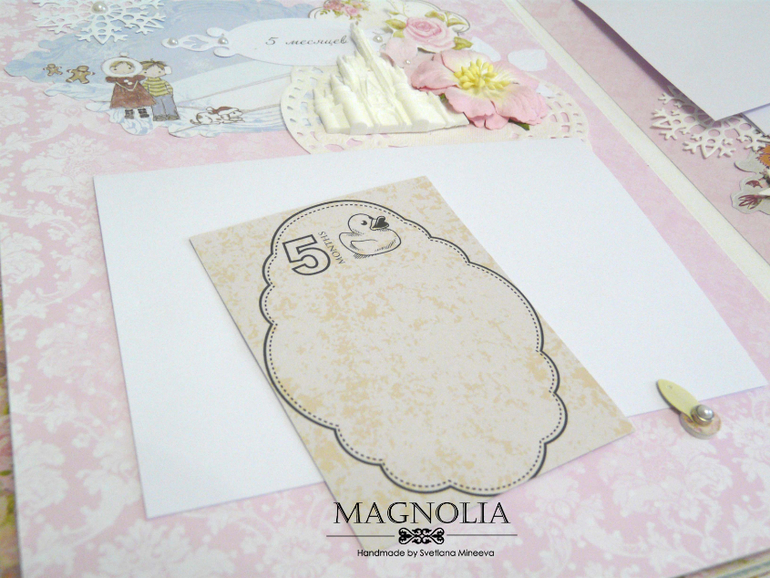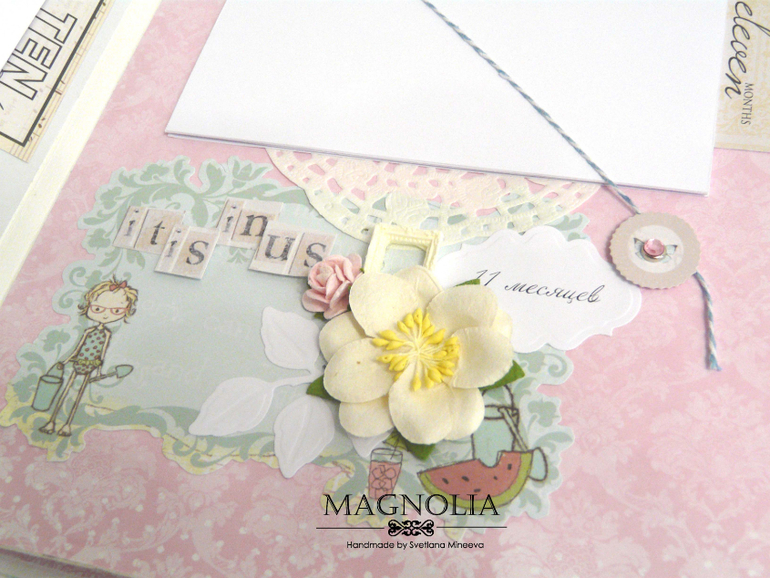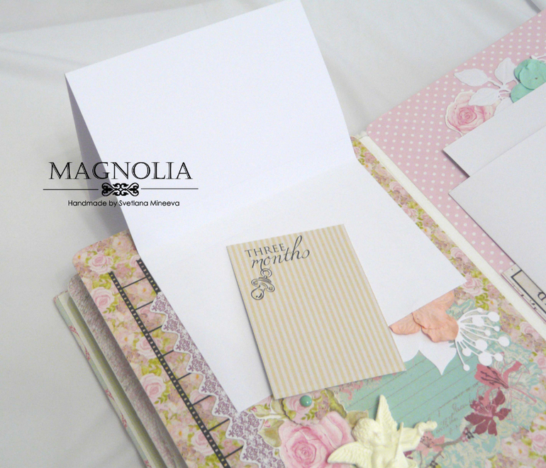 В этот раз я начала готовиться заранее, плюс очень круто поменяла ритм работы и отношение к скрапу, стало легче, поэтому подарочный альбом поспел к празднованию 3 месяцев малышки)) Так что поедем с Ксюшкой в воскресенье в гости вручат подарок)))