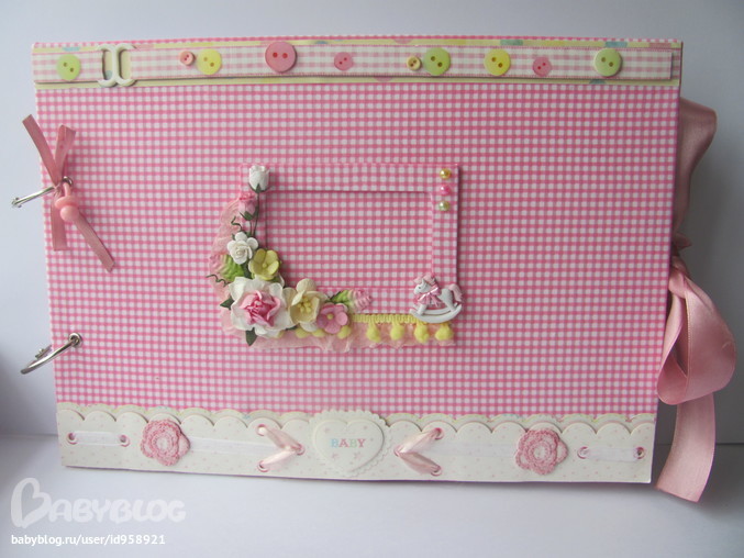 Восемь разворотов: первый разворот с двумя кармашками - можно положить браслетики из роддома , а во второй кармашек - локон.есть место записта А4и метрики малышки,место для 3 снимков из роддома