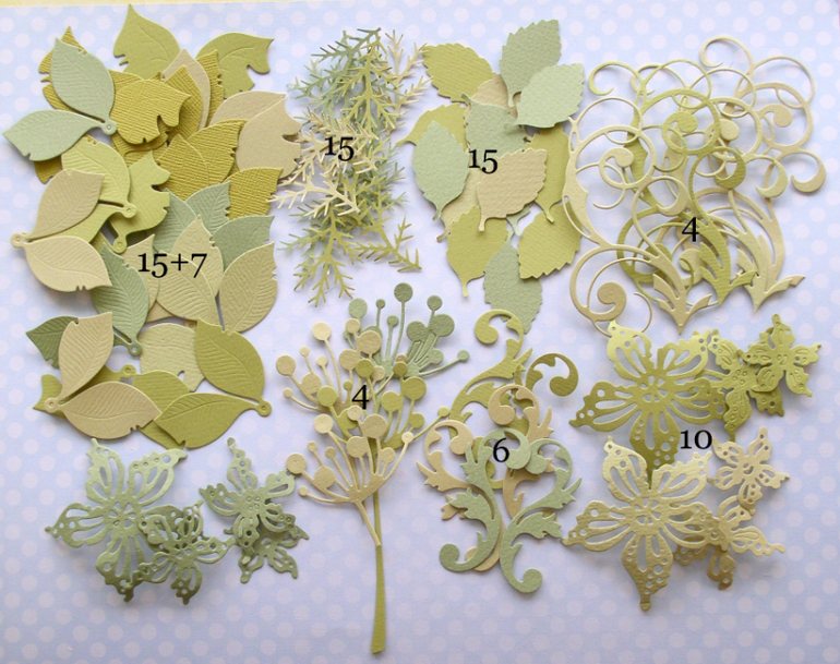 2. Растительный набор из акварельной бумаги и кардстока всего 76 элементов 400 рублей ПРОДАН