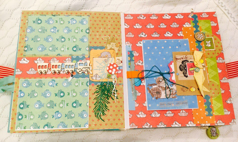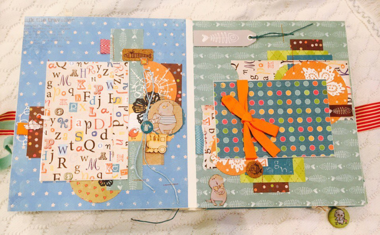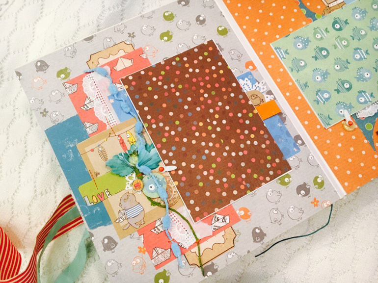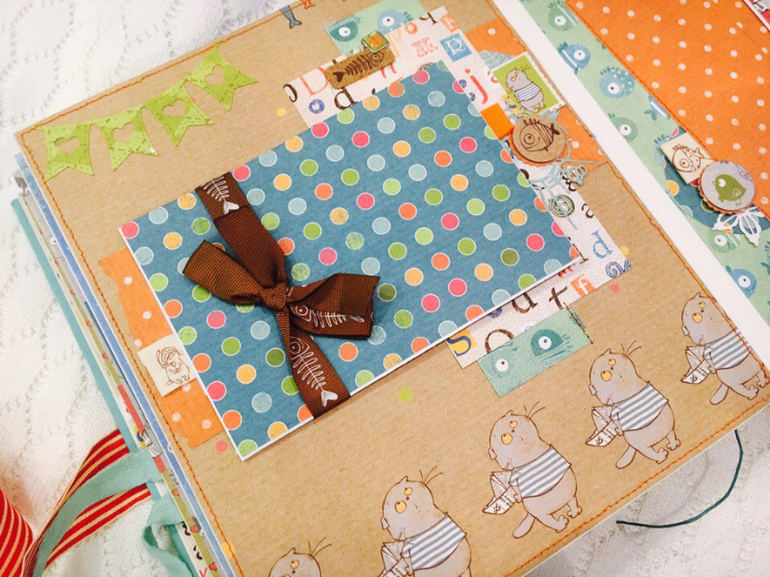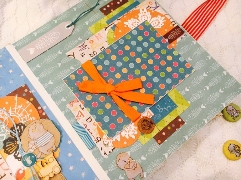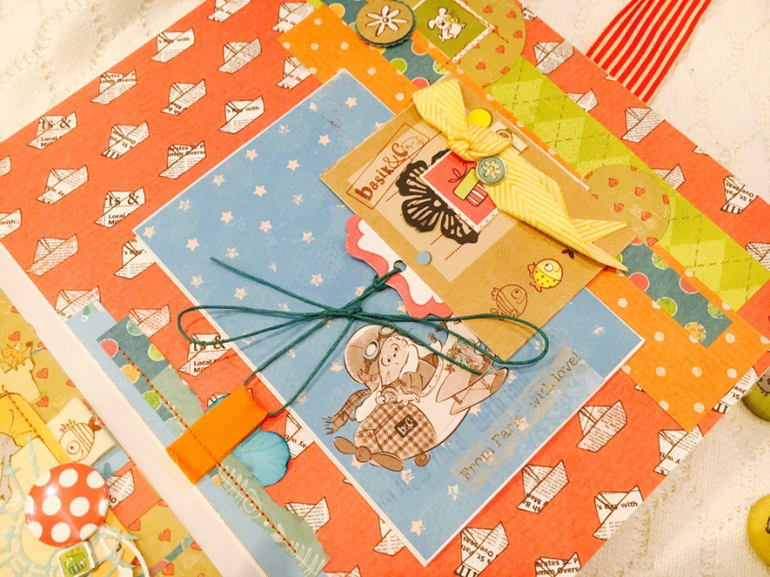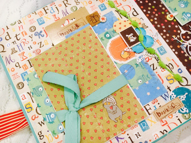 А я к вам сегодня с ярчайшим альбомом для малыша из любимой бумаги про Басика, очень она мне нравиться из нее такие разнообразные альбомы выходит и требует она минимум украшений, так как сама по себе имхо прекрасна