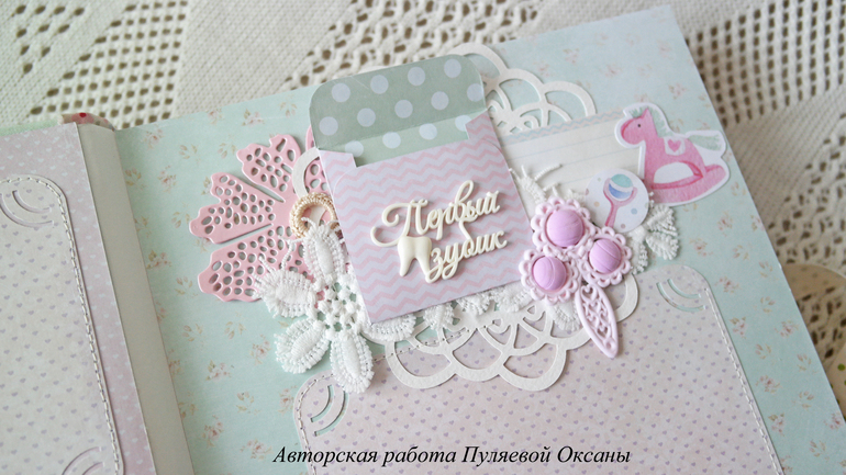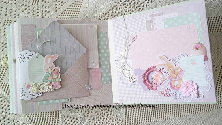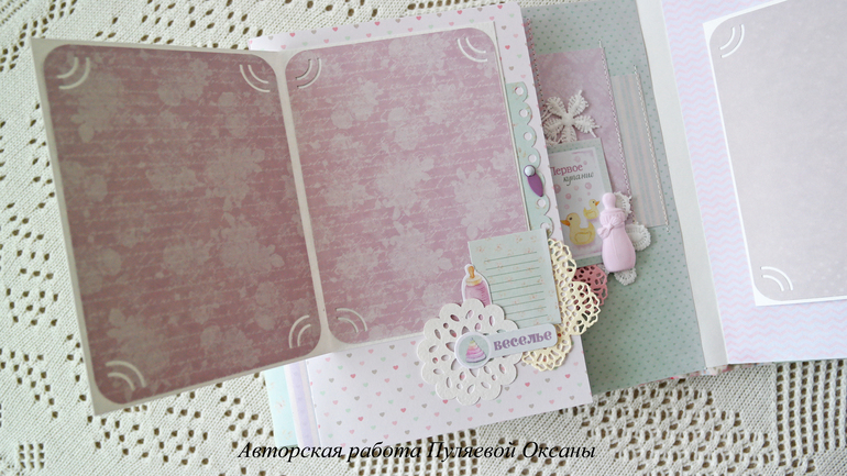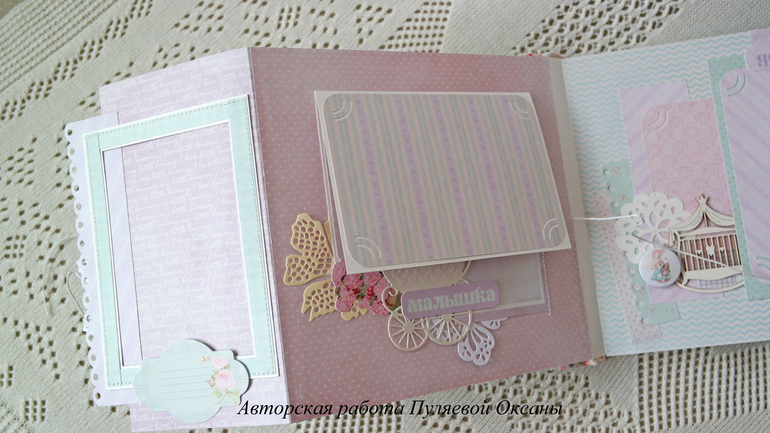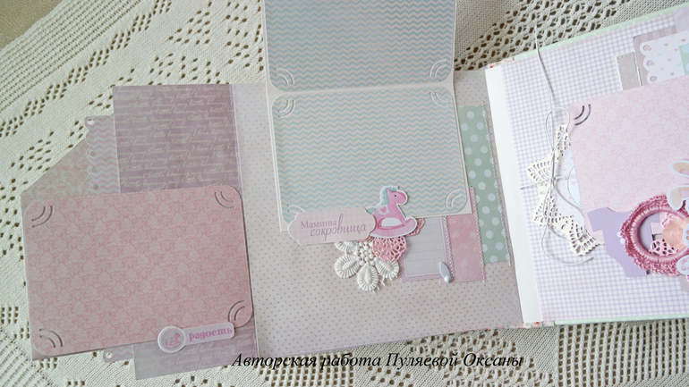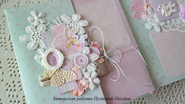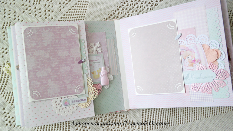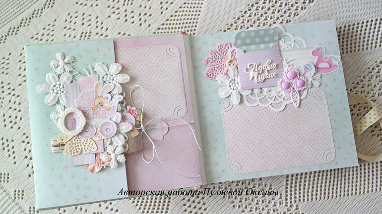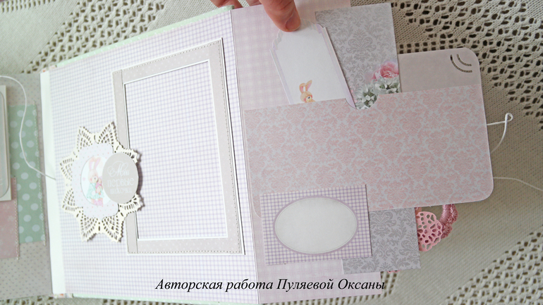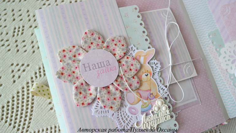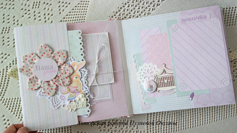 Альбомы ДетскиеВсем привет! Хочу поделиться с вами нежным альбомом для малышки - "Наша зайка" ! В нем есть: тематические странички про рождение, первое купание, первые успехи, первые шаги и тд. В альбоме очень много милых заек. Формат 20 на 20 см, 4 разворота, 8 страниц, поместилось 25 фото 9 на 13 см, есть карман для бирочки, первых носочков, первого зубика, карточки для отпечатка ножки и ладошки. Очень много раскладушек для фото. Есть карточки для важных заметок. Спасибо за просмотр! Альбом продается