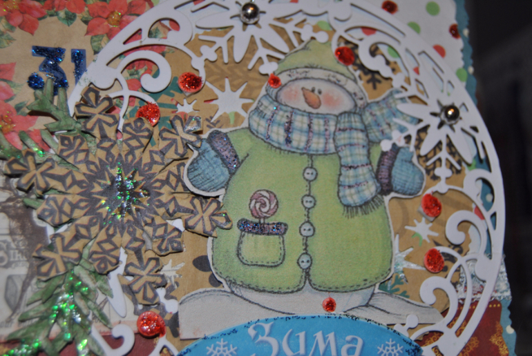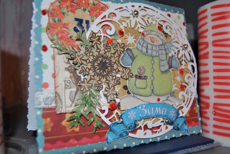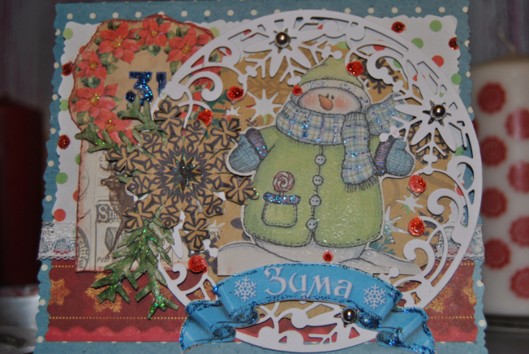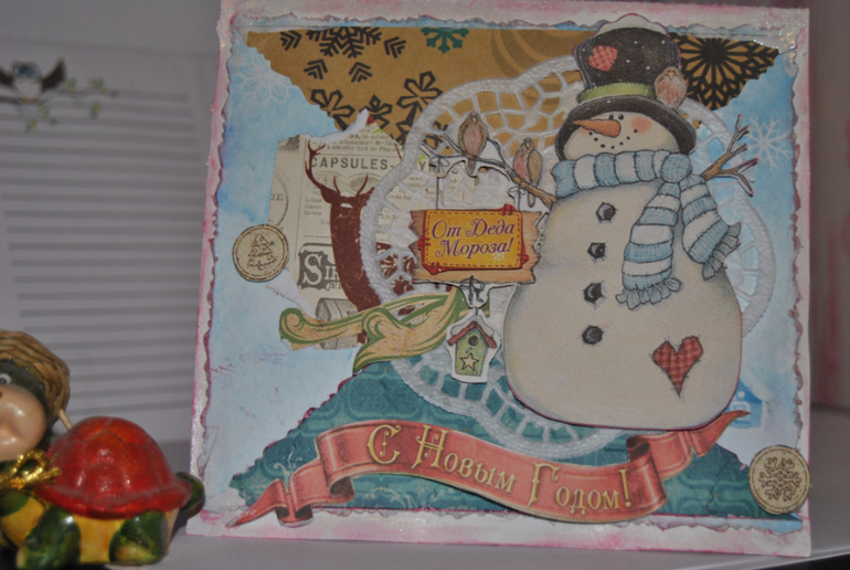 А вышло\а вот такая открыточка. И еще одна, получилась уже серия снеговиков)