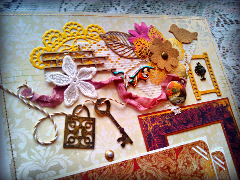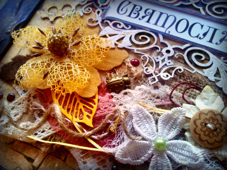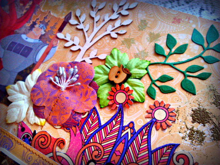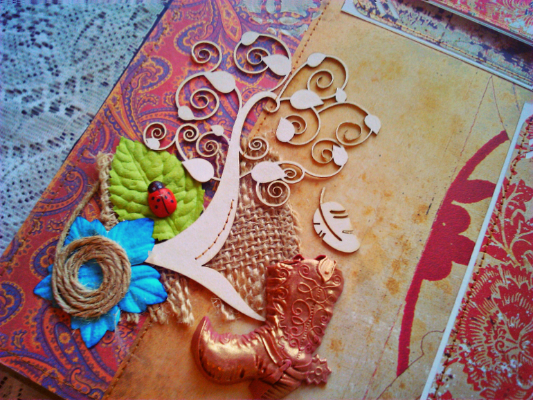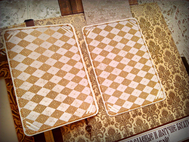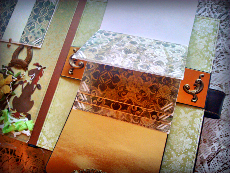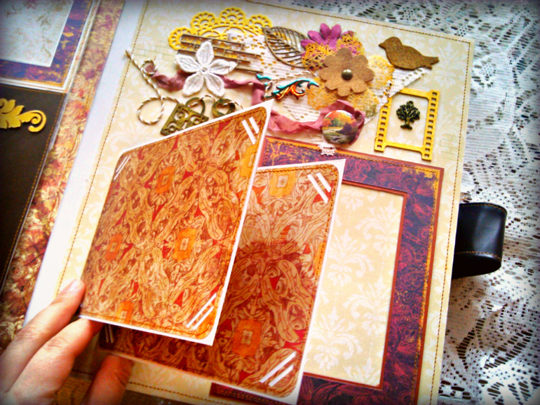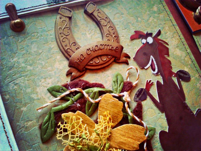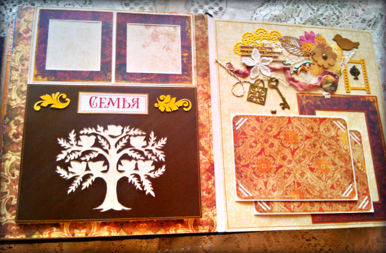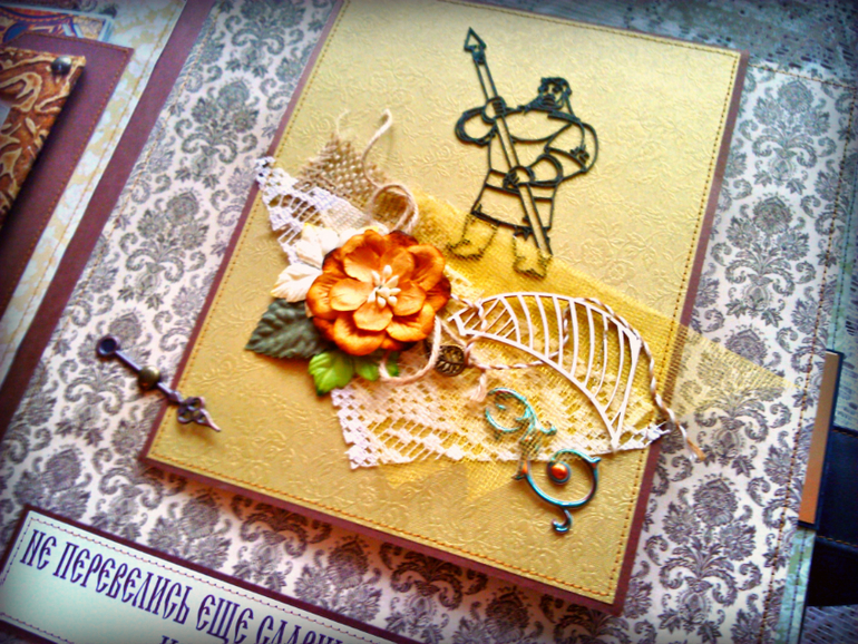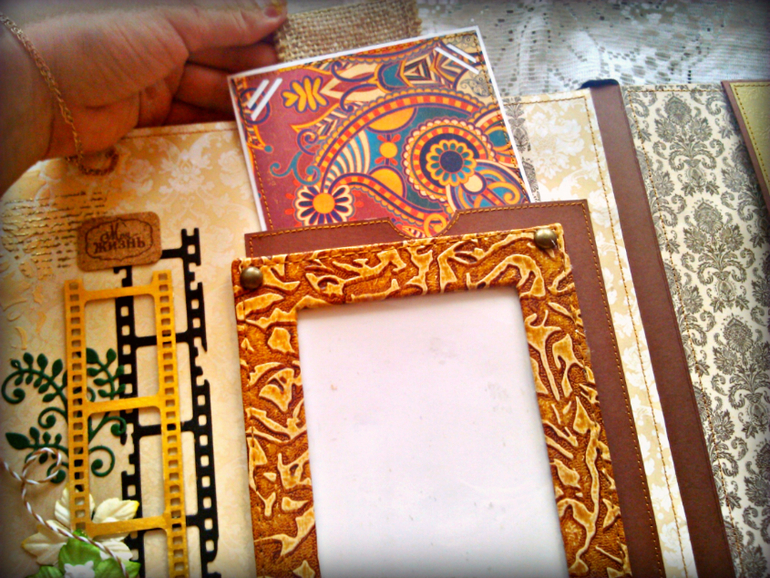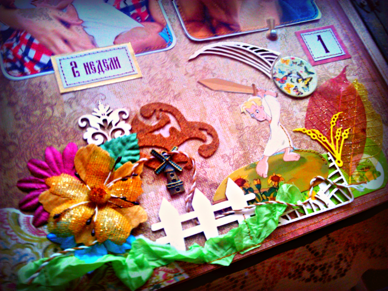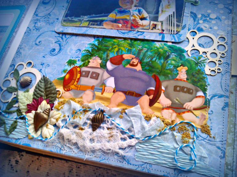 Альбомы ДетскиеЗдравствуйте, дорогие рукодельницы! Представляю Вашему вниманию тематический большой альбом для мальчика Святослава Игоревича, над которым я трудилась около двух месяцев. Отдельное спасибо хочется сказать заказчице Светлане за терпеливое ожидание и свободу в творческом исполнении и реализации всех задумок и идей. Имя мальчика само натолкнуло на идею взять Трех Богатырей Киевской Руси за основную тему альбома. Иллюстрации были взяты из одноименного мультфильма. Данную тему поддерживают такие детали как: славянский шрифт, кармашки из натурального льна, анкеры в виде стрелок, фурнитура (петли, замки, металлические уголки), а также принт бумаги. Кстати, о ней: подходящего к этой тематике бумаги, отвечающей нашим с заказчицей требованиям по пастельной цветовой гамме, к сожалению, не оказалось, поэтому мне пришлось подбирать все по листу. Каждый разворот в альбоме оформлен в соответствии с темой фотографий, их цветовым решением. В итоге, получившимся результатом я очень довольна и могу утверждать, что этот альбом - действительно моя гордость. Это из той серии, когда берешь в руки и понимаешь: ВЕЩЬ!! Он тяжелый и очень большой (20 страниц, размер 25*29см, толщина корешка 14 см)