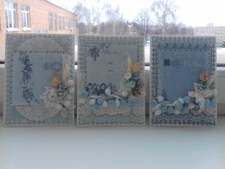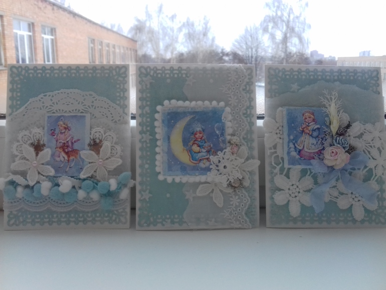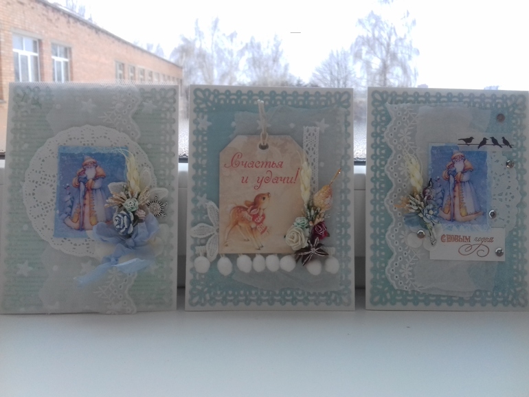 Открыточки чудесные! Очень нежные! Грамотно сделана композиция!:) можно было чуть добавить брызг белым акрилом;) как снежинки;)