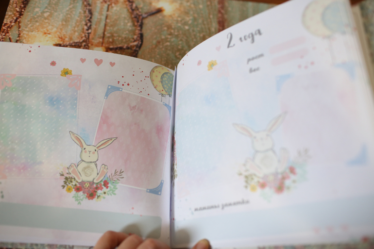 1) альбом для девочки с милыми зайчиками . 30 листов для вклеивания фотографий.