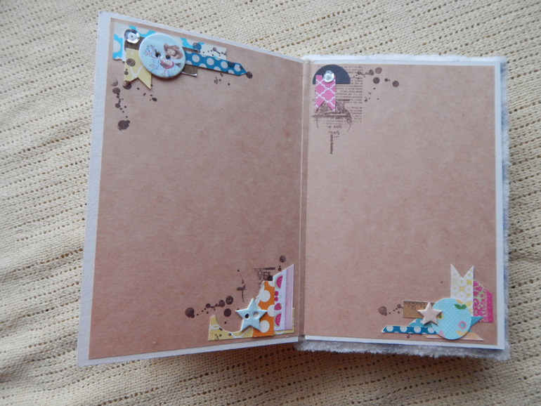 Миникиеще хочу показать одного пушистика это сестричка близнец вот этого альбомчика,тоже выполнен из крафтовых страниц и декор из обрезков