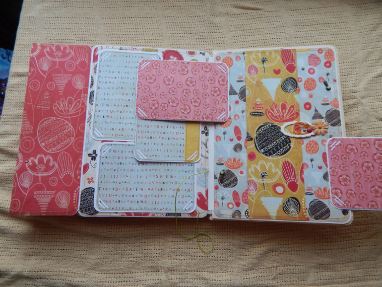 Альбомы других категорийи последняя на сегодня работка)) Яркий,сочный альбом из Примовской бумаги,старой коллекции...бумага очень понравилась-яркая ,красочная,сочная,но когда все страницы и подложки нарезала,поняла что не могу подобрать декор) поэтому по декору очень скудный(от обложки просто балдею))Размер чуть больше А4 вмещает около 50 фото 10х15