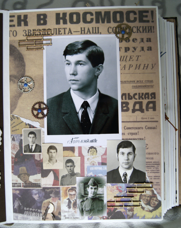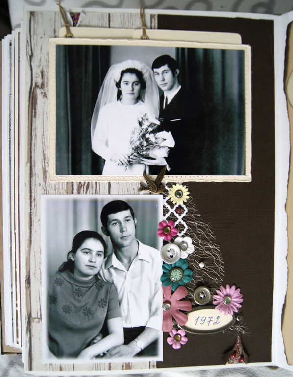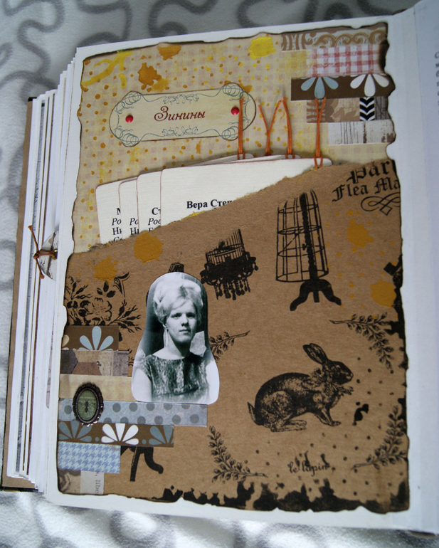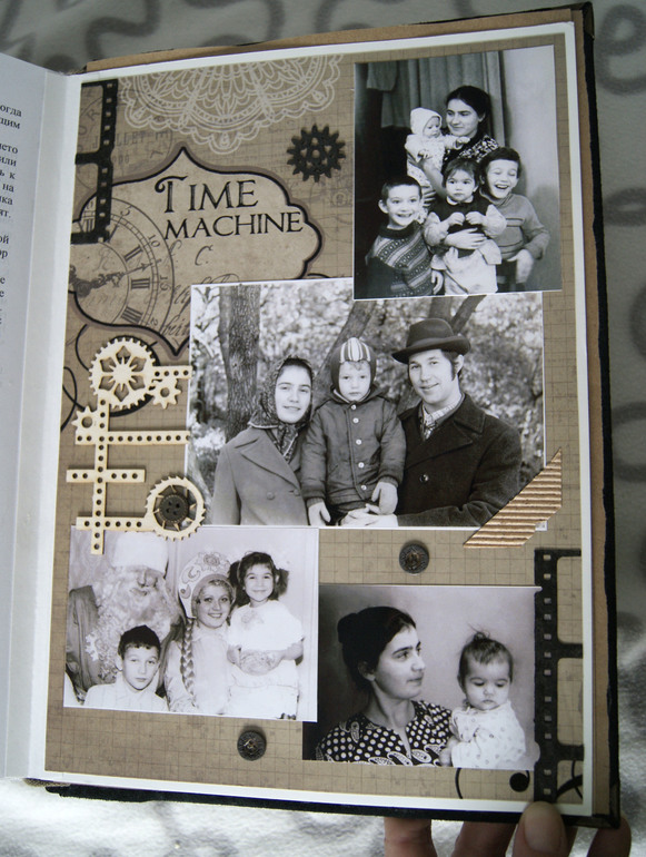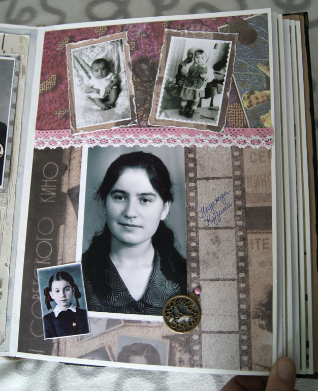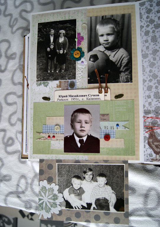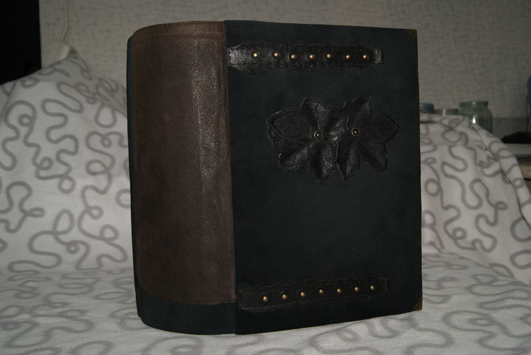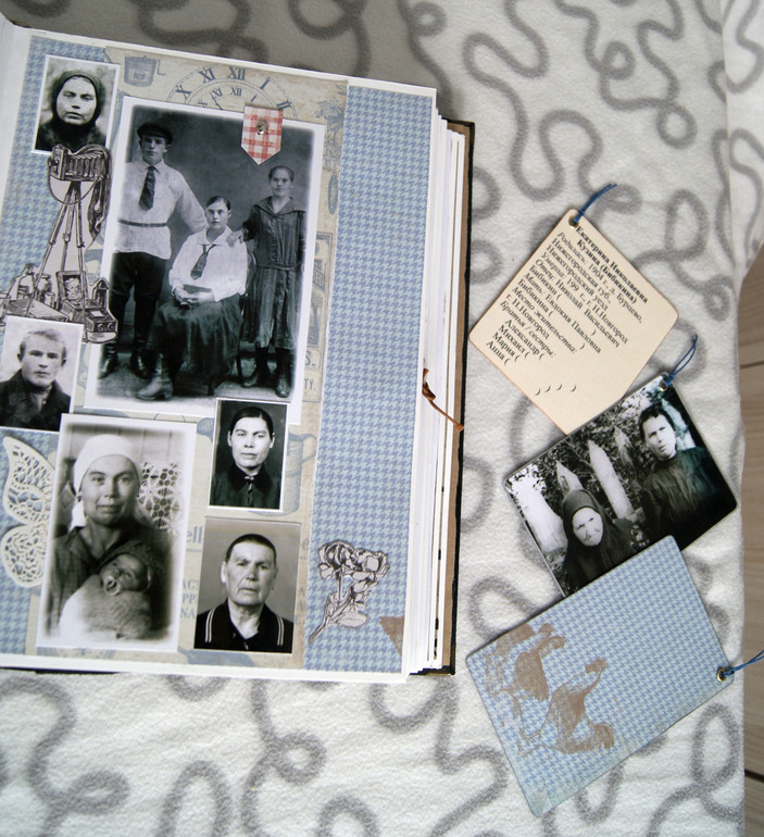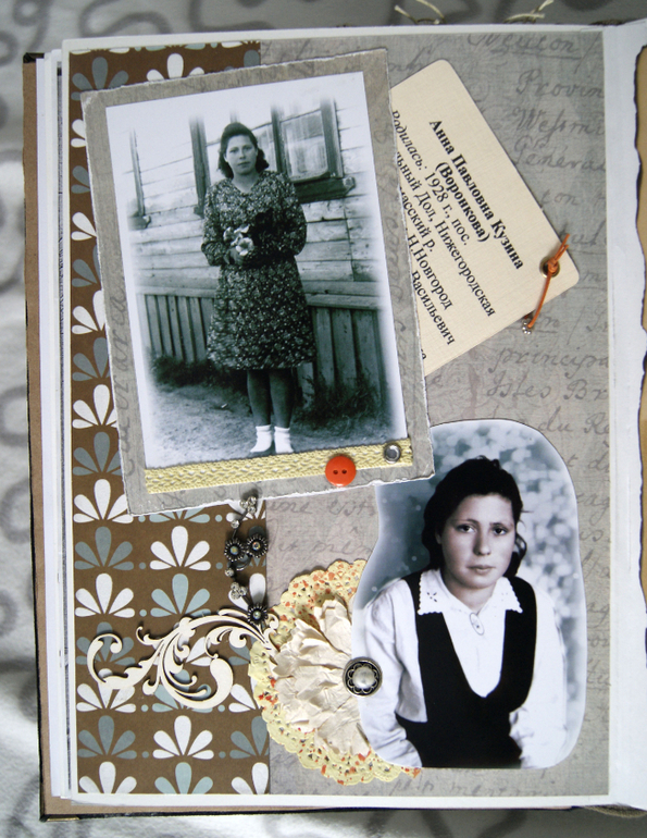 Конечно это не скрап альбом, это скрап книга! Материал обложки натуральная замша и кожа. Собраны не только фото предков, но и по каждой фамилии составлен небольшой рассказ, приложены архивные документы. Поэтому толщина по корешку 14 см.