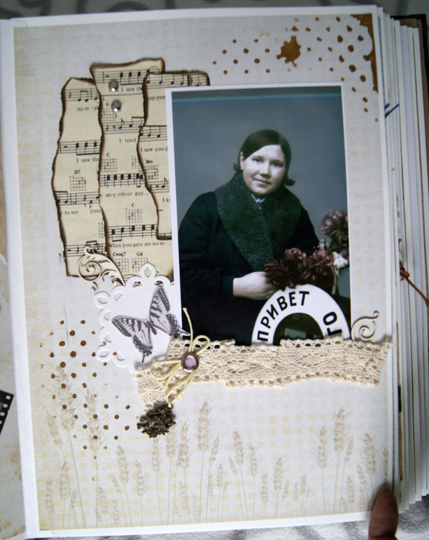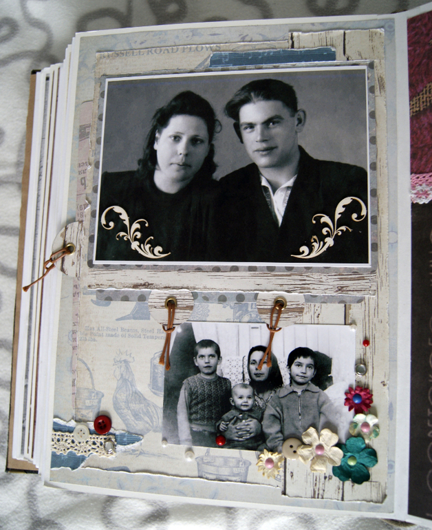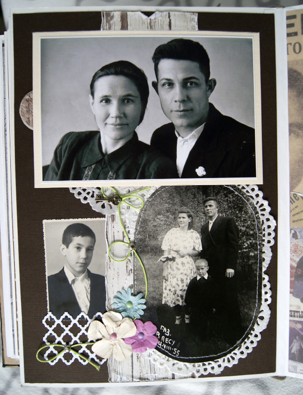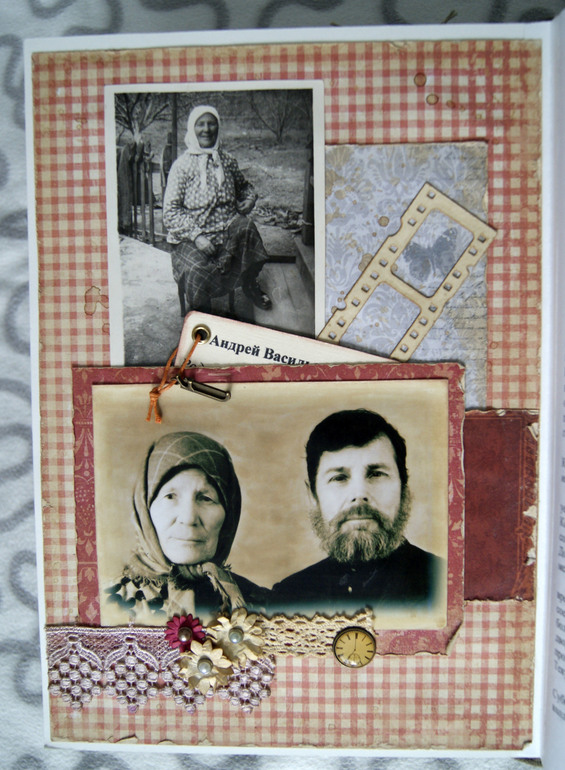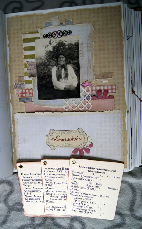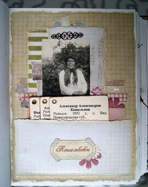А теперь фотографии и скрап. Здесь предки настолько древние, что никаких фото нет, имена то пришлось в архиве восстанавливать. Поэтому вместо фото открытка