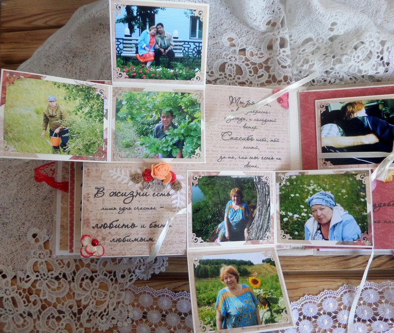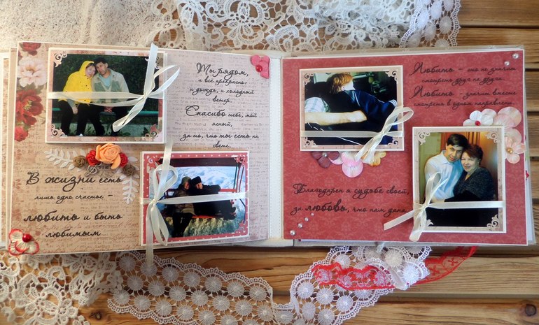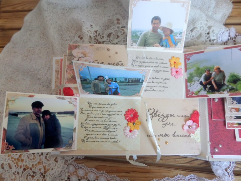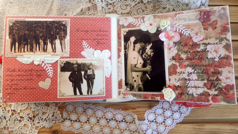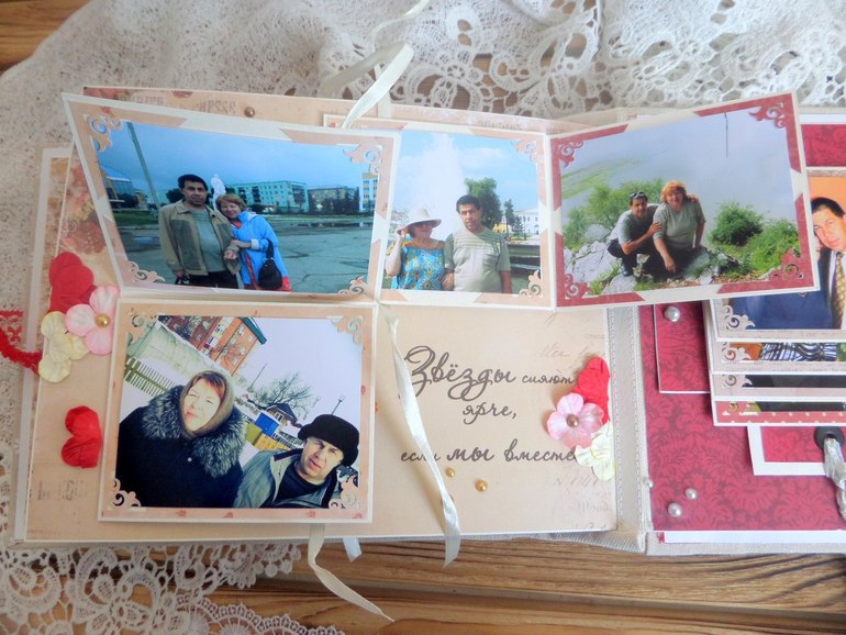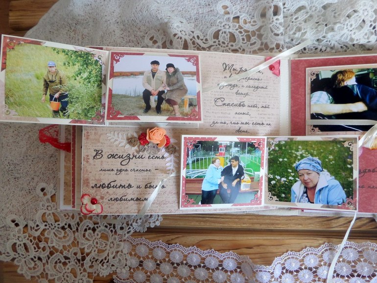 ), дабы не захламлять ленту)) Начать хочу с альбомчика, сделанного на заказ. От любящей дочери к 35-летию свадьбы родителей. Где-то пишут, что это коралловая свадьба, а где-то, что льняная....поэтому для обложки выбрала лен, ну и, конечно, бумагу коралловых оттенков))) Альбомчик получился 20х25 см, а вот количество фото не помню)) вроде больше 60-ти...не буду обманывать)) Старые фото все пришлось реставрировать (тут не могу не сказать СПАСИБИЩЕ моему любимому мужу) Фотографировала на бегу)))В общем прошу к просмотру))
