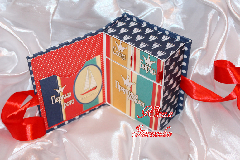 А вот и маленький фотоотчет - о конфетке, которая отправилась и уже заполнилась победительницей. Мамины сокровища были выполнены на мальчика - в ней 4 отделения - первое фото, приятные мелочи, соска и бирочка)