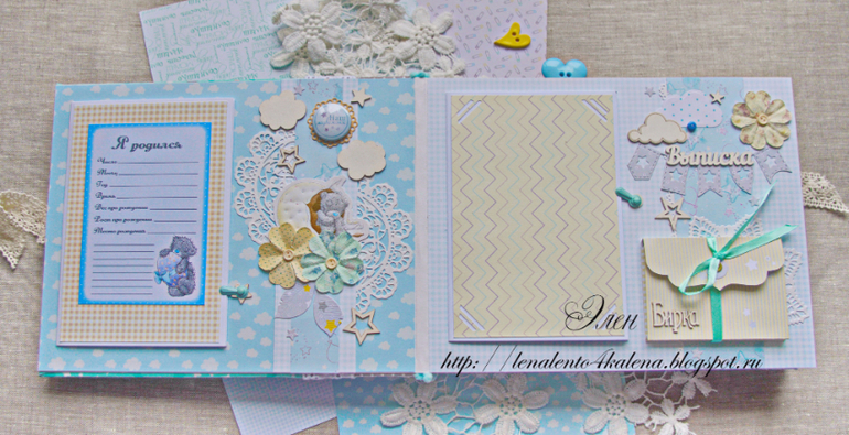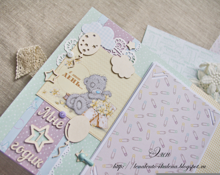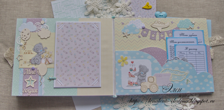 Альбом тематический: Я родился +Выписка (есть конвертик для бирочки), Первый Новый год, Мне 1 годик и просто странички для фото.