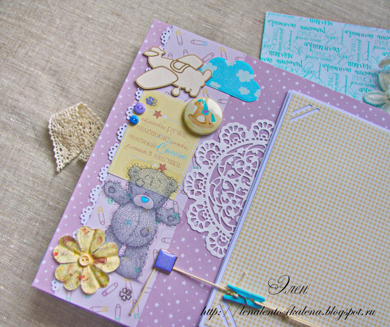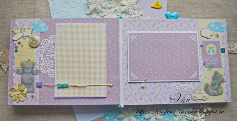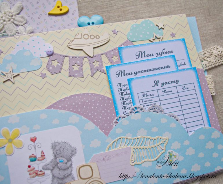 Альбомы ДетскиеАльбом с мишками Тедди формата 20х25 см, 10 стр. На каждой страничке раскладка на 5 фото, на последней страничке кармашки в виде облаков, с карточками для записи о развитии- рост и вес, мои зубки, первые шаги, первые слова и т.д.