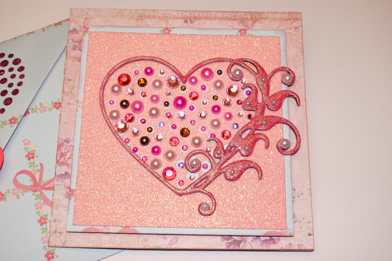 От коробочек, о которых я писала вот буквально час назад, у меня осталось одно сердечко. Я его приклеила в виде печатки на закрытие конверт и украсила жемчужиной.