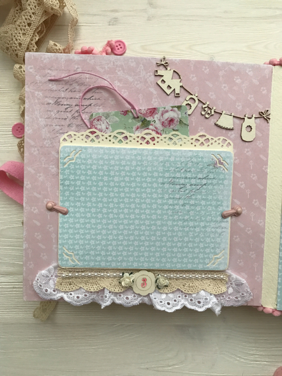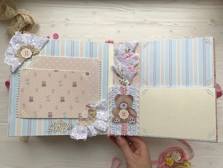 Не сфоткала, внутри за большим мишкой книжечка под фото с первого дня рождения