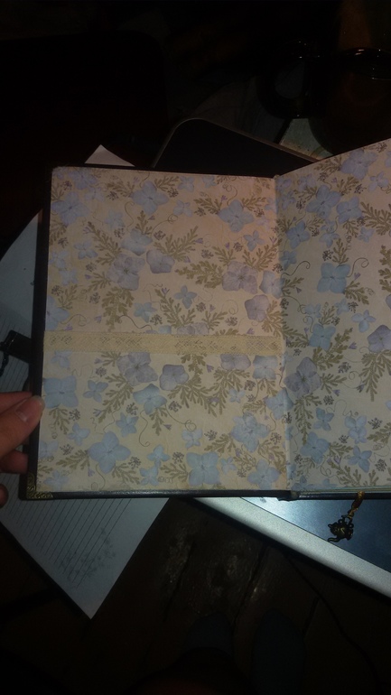 Блок состоит из 240 тонированных кофе страничек с цветочками по краям, похожих на те, которые на форзацах.