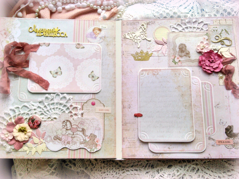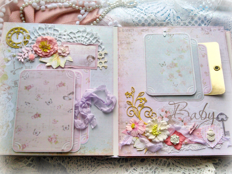 Альбомы ДетскиеВсем привет!!! Пришло время показать нежный шебби-альбом для маленькой принцессы Алисы. Каждый альбом мне дорог по-своему, и этот запал в душу, даже жаль с ним расставаться!) Он получился очень милый, трогательный, и функциональный. Вмещает около 50 фото 9*13. Теперь еще одна семья красиво сохранит самые памятные моменты первого годика жизни своей доченьки, чему я несказанно рада! Как всегда, делала с любовью и теплом! Приглашаю к просмотру)