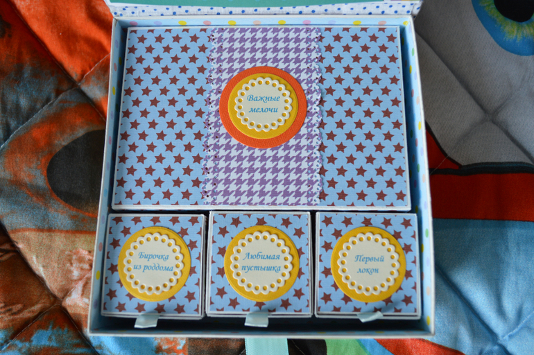 Коробки, шкатулки, комодыДобрый день, я к вам с яркой коробочкой "Мамины сокровища", размер ее 17х17 см. внутри 4 коробочки, карман для карточек или фотографий, карман с прозрачной серединкой для снимка узи и 4 подложки для фотографий.