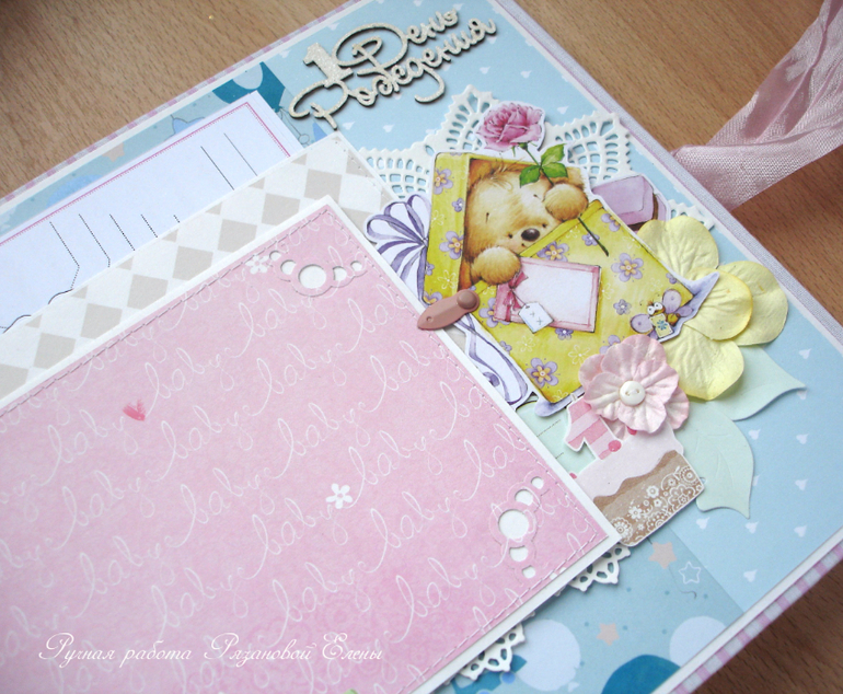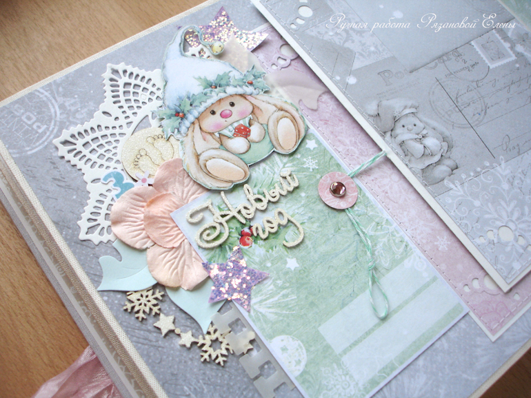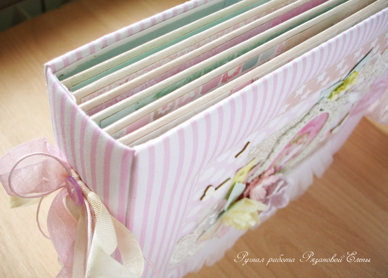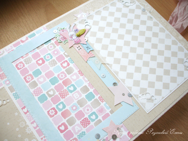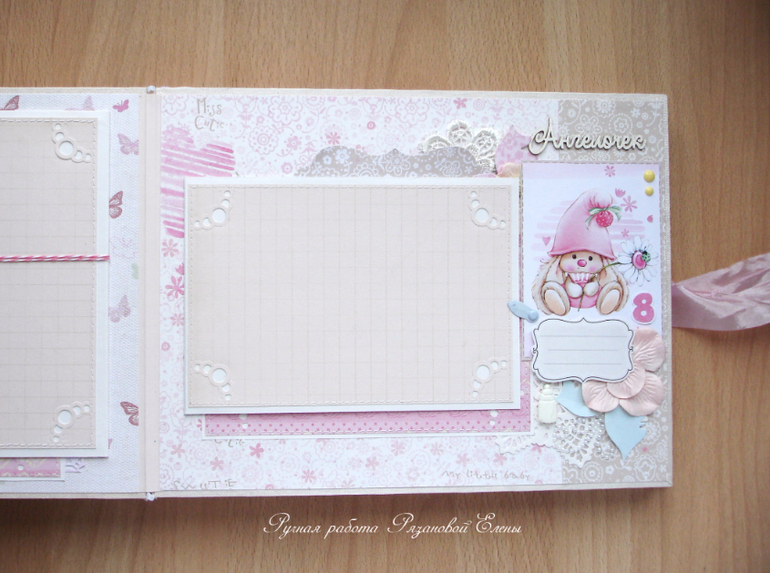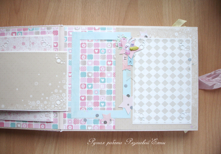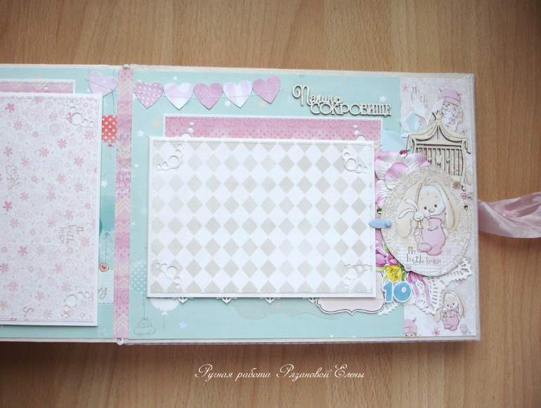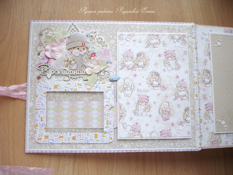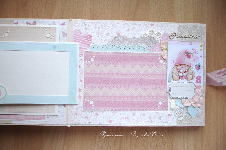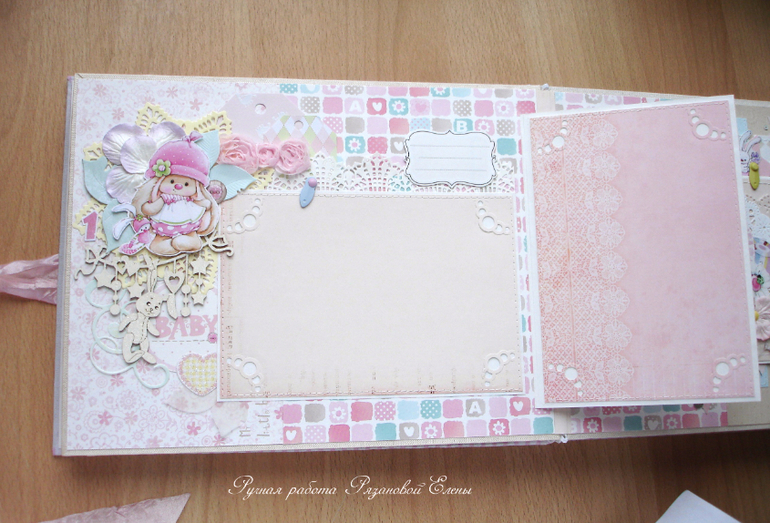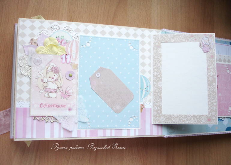 Альбомы ДетскиеА я сегодня с альбомчиком с зайками_Ми для маленькой красавицы Самирочки. Альбом с тканевой обложкой, закрывается на широкую шебби-ленту, содержит 7 разворотов, размером 19*25см.