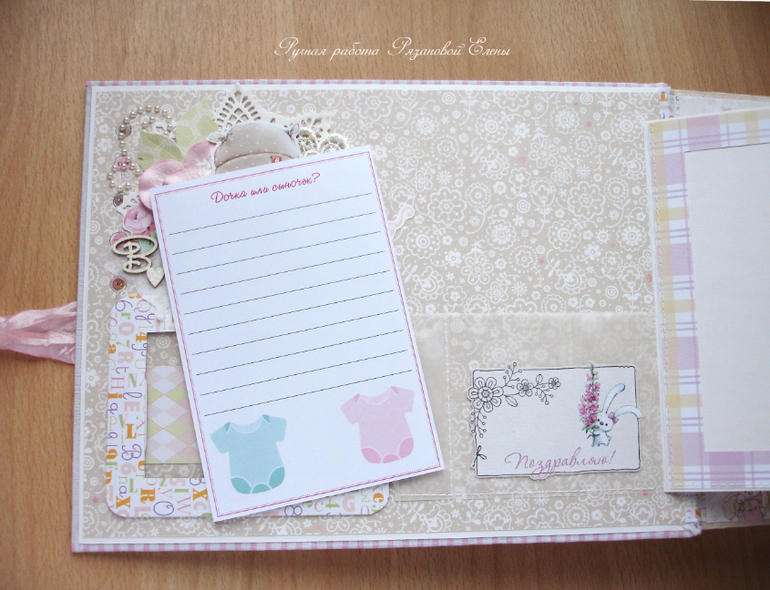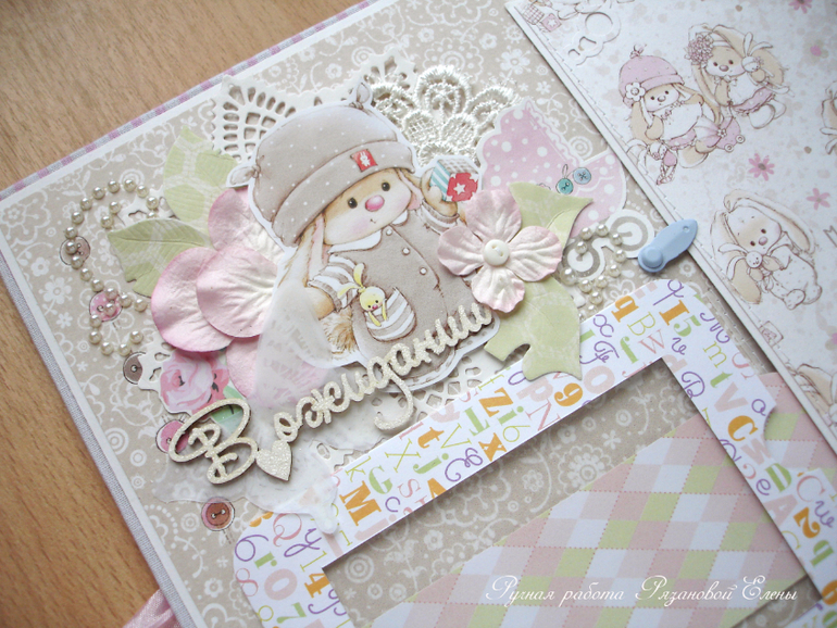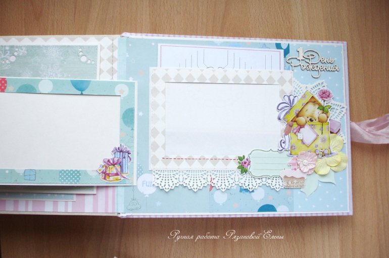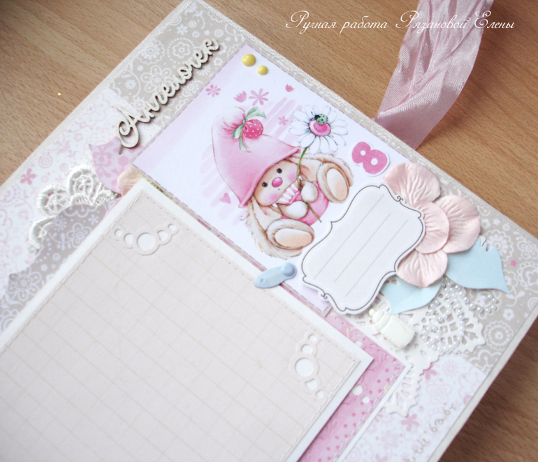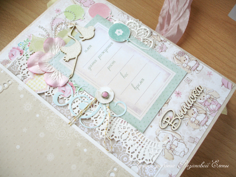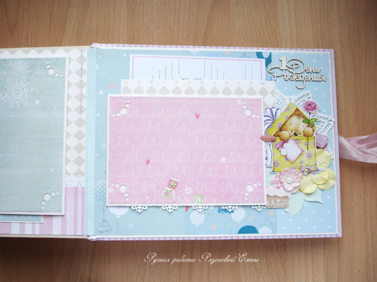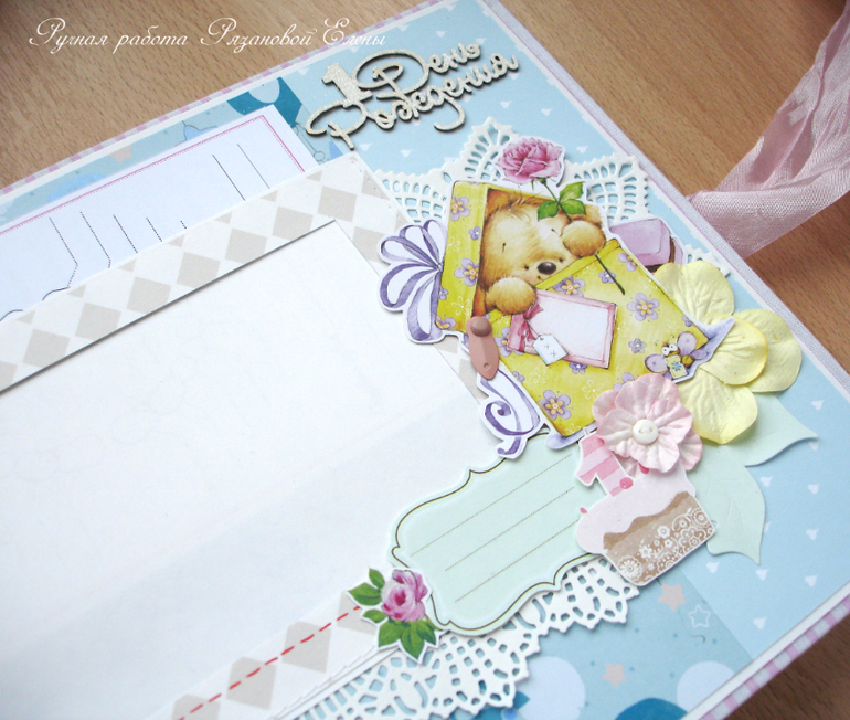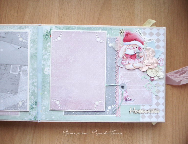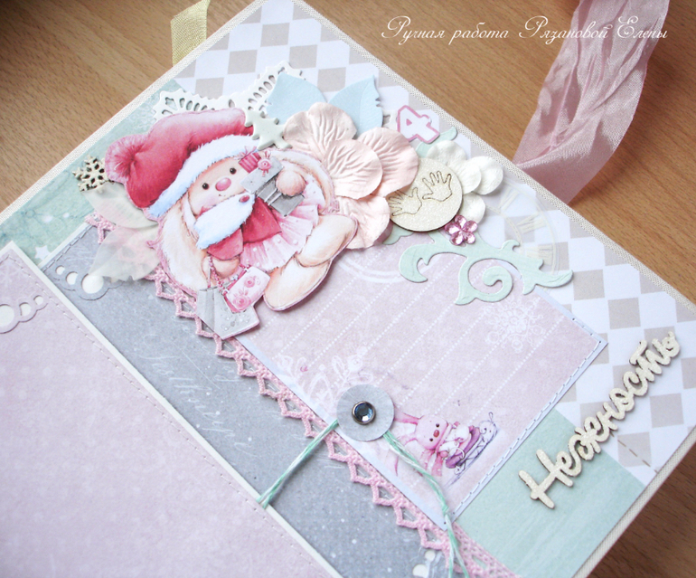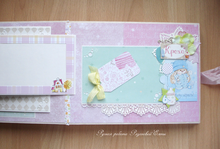 Альбомы ДетскиеА я сегодня с альбомчиком с зайками_Ми для маленькой красавицы Самирочки. Альбом с тканевой обложкой, закрывается на широкую шебби-ленту, содержит 7 разворотов, размером 19*25см.