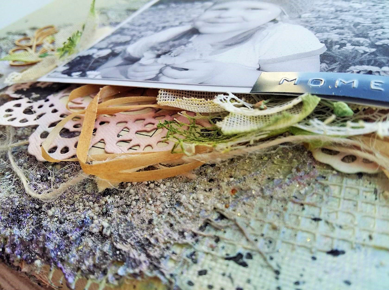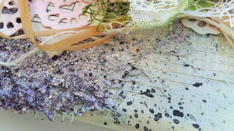 Холст на подрамнике размером 23,5х17,5см,, использованы акриловые краски, грунт, текстурная паста, "посыпушки", глитер, вырубка, эмбоссинг и др. материалы премиум класса.