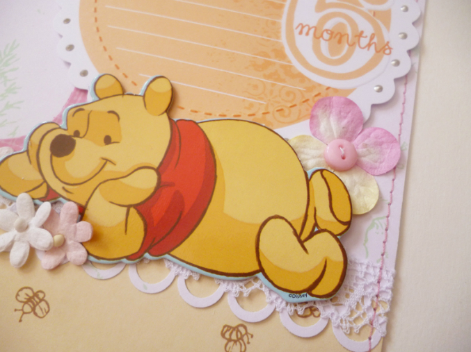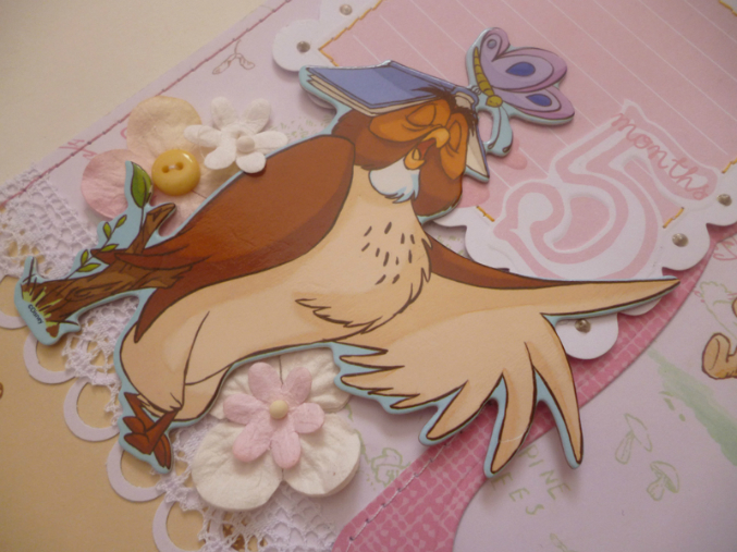 У меня будет альбом-книга о первом годике для маленькой девочки. Пустила в ход класснючую бумажку с Винни-Пухом, жаль мои фотографиии не передают всей ее прелести ))) Но при всей своей замечательности, бумажка эта обладает одним большим минусом - ее жалко резать на части, жалко закрывать фотографиями...Там обалденные крупные иллюстрации, те что можно увидеть в классических изданиях этой книги, выполненные Шепардом и Милном. Альбомчик у меня будет книгой, написанной любящими родителями о маленькой девочке. Поэтому много места на страничках отдано под журналинг. Ну и сам разворот (простите за качество фото, у нас в кои-то веки весь день светит яркое солышко, от которого невозможно спрятаться, пришлось фоткать с закрытыми шторами ))):