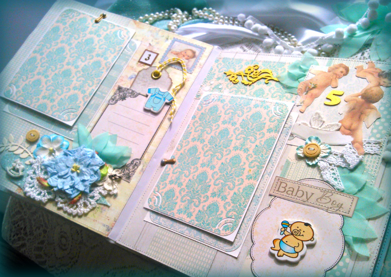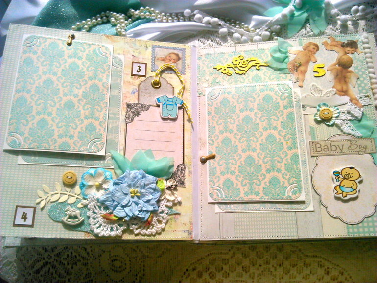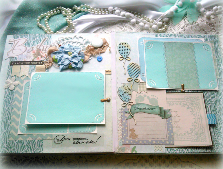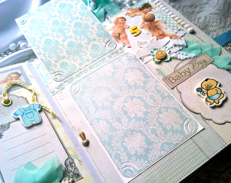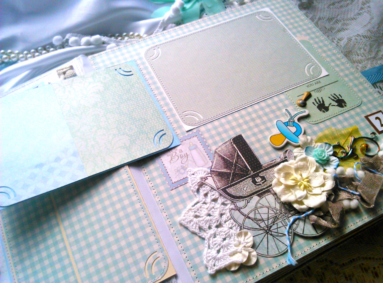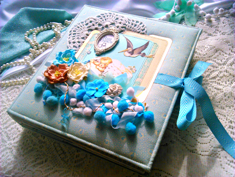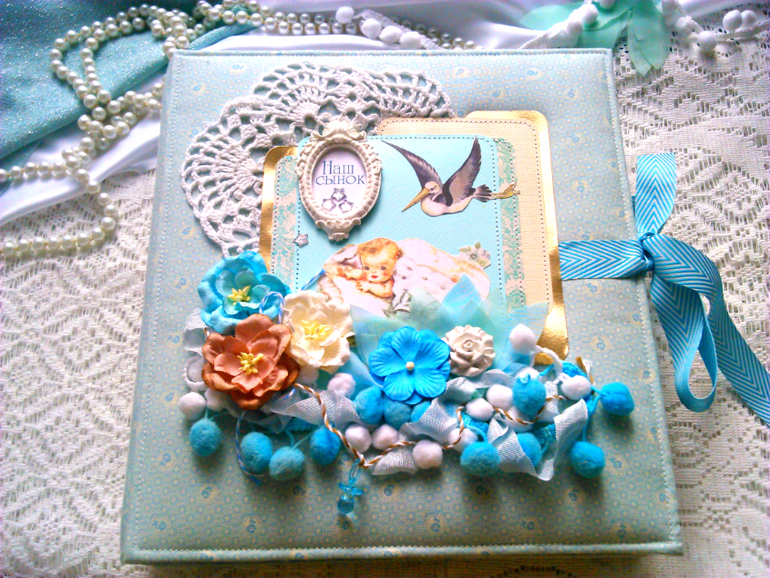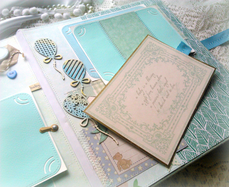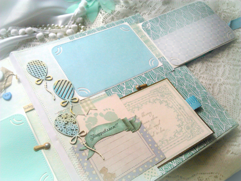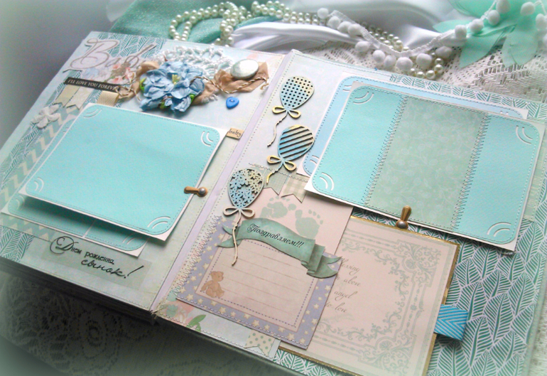 Альбомы ДетскиеВсем доброго времени суток!!! Представляю Вашему вниманию нежный мятный альбом для мальчика. Можно дополнить по желанию карточкой с данными при рождении. (межгород-не проблема) Альбом вмещает более 30 фотографий 9*13, размер его 22*25 см, выполнен в пастельных тонах (бирюзовый, голубой, бежевый), будет хорошим фоном для памятных фотографий первого годика малыша.