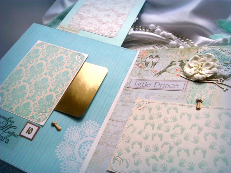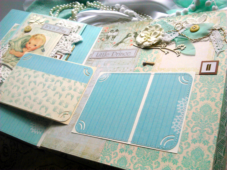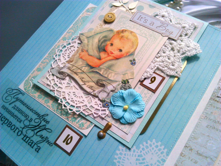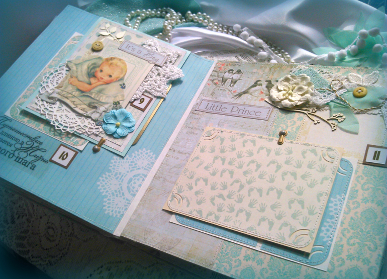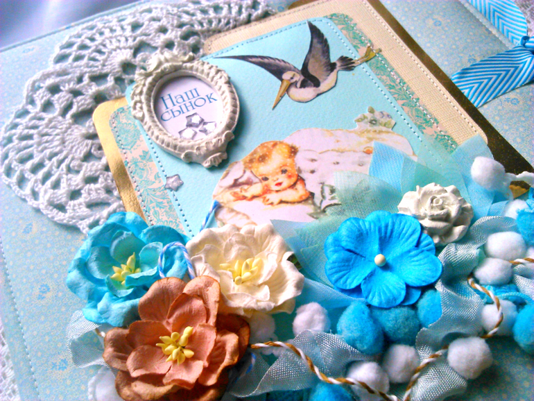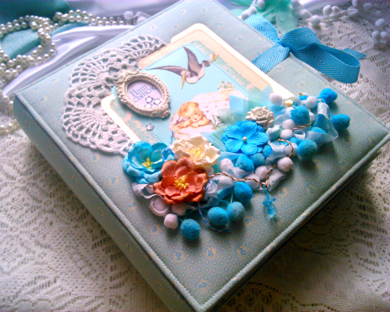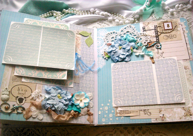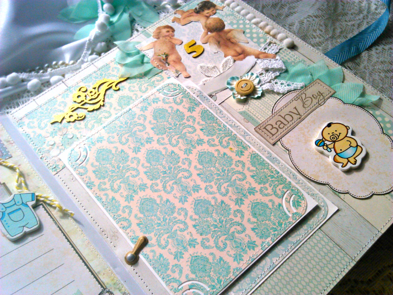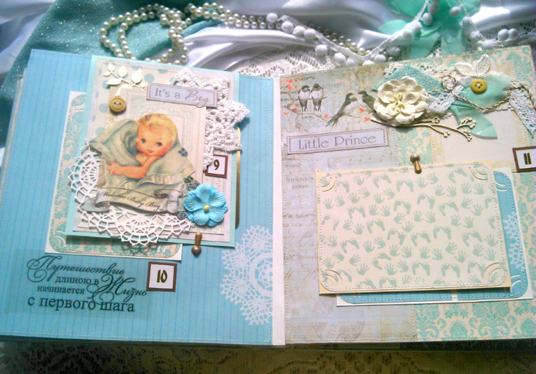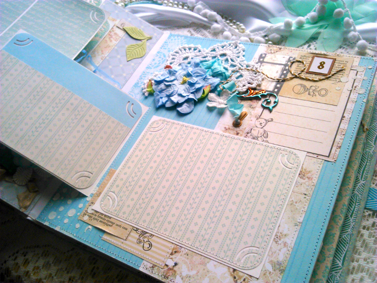 Альбомы ДетскиеВсем доброго времени суток!!! Представляю Вашему вниманию нежный мятный альбом для мальчика. Можно дополнить по желанию карточкой с данными при рождении. (межгород-не проблема) Альбом вмещает более 30 фотографий 9*13, размер его 22*25 см, выполнен в пастельных тонах (бирюзовый, голубой, бежевый), будет хорошим фоном для памятных фотографий первого годика малыша.