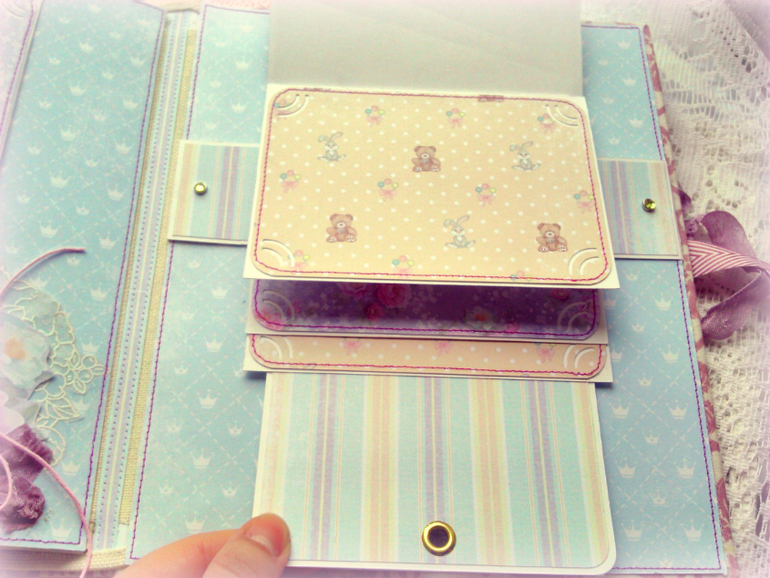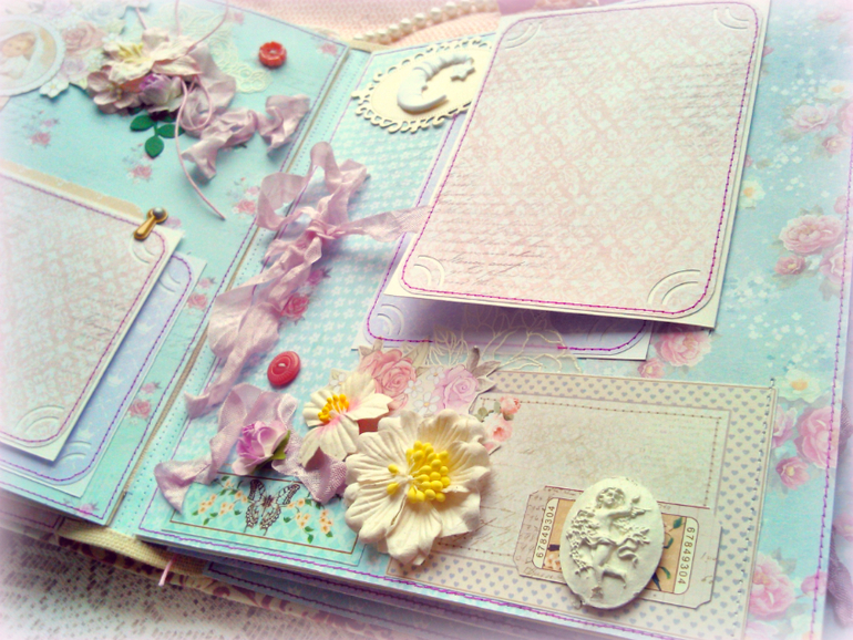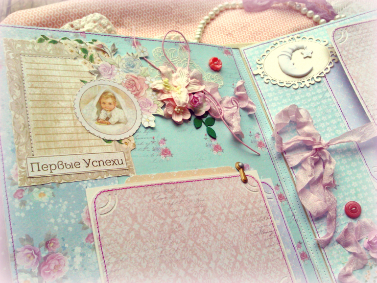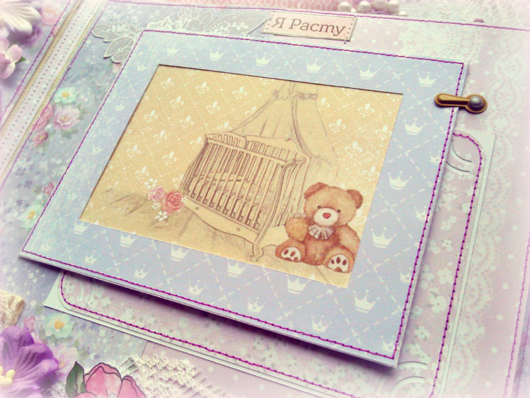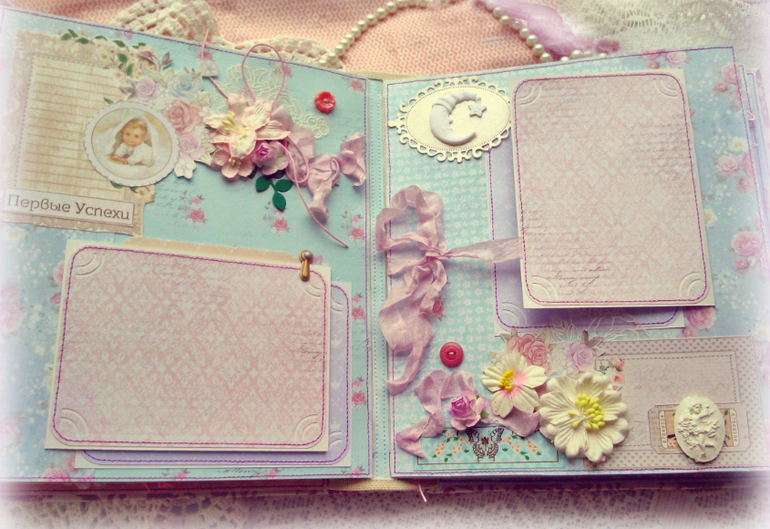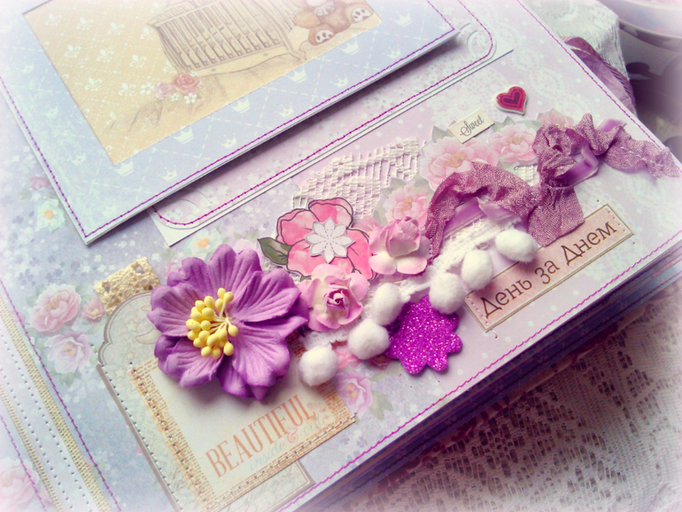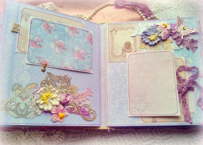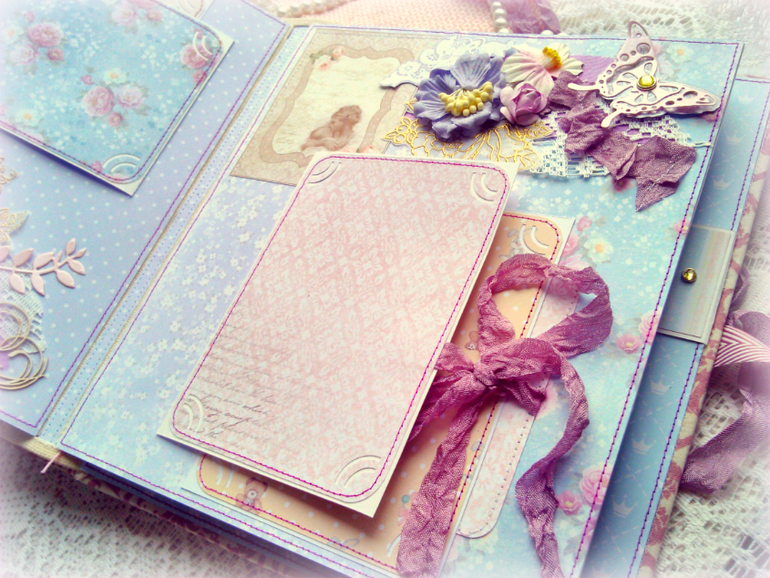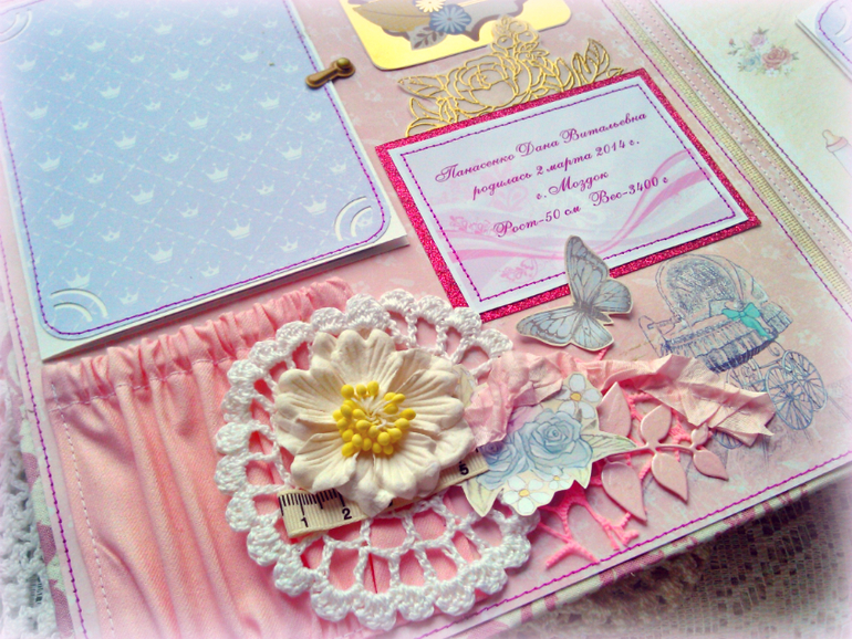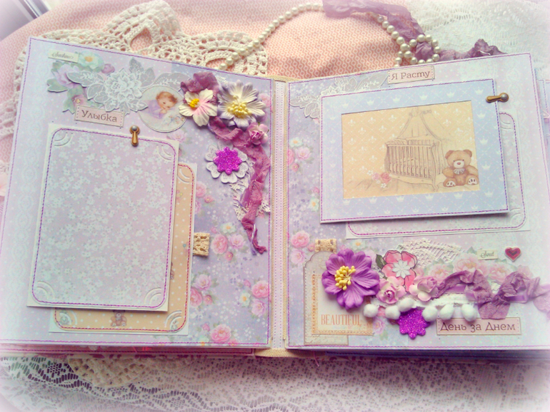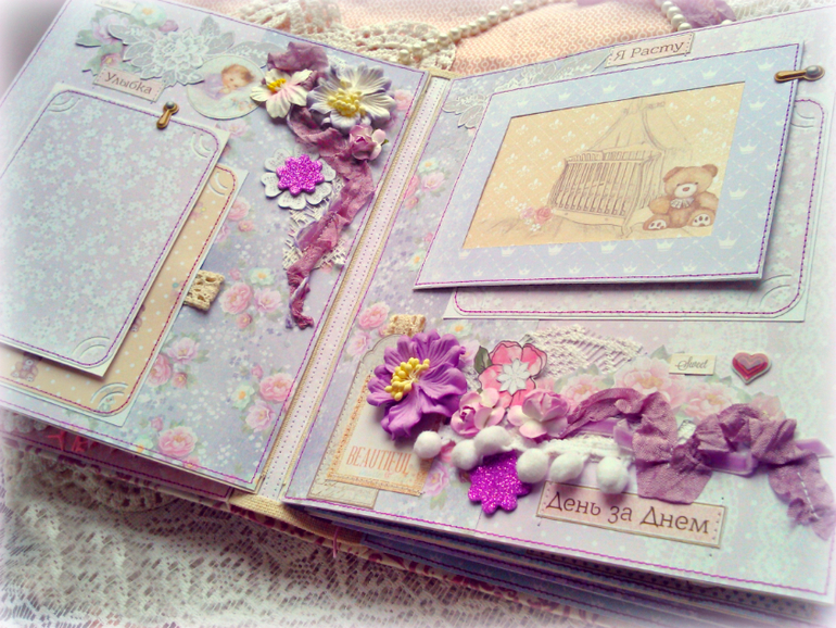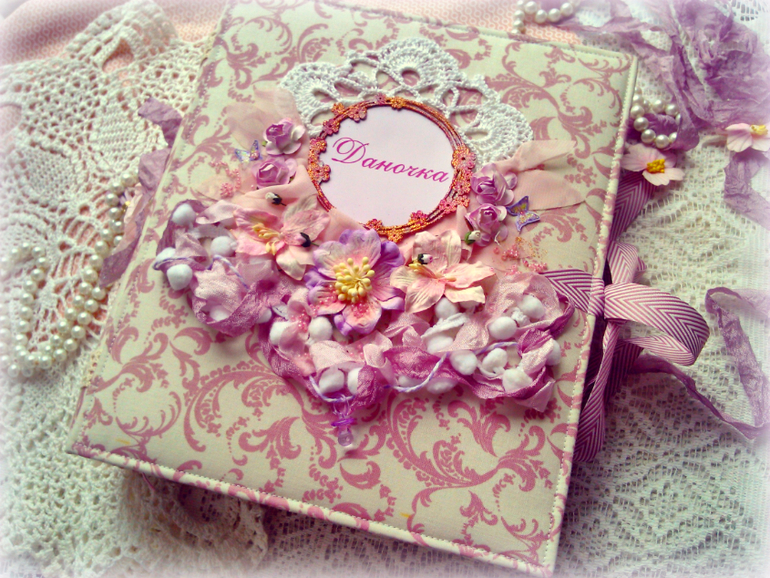 Альбомы ДетскиеВсем доброго времени суток!! Нежный альбом для Даночки совсем скоро уедет к своим обладателям в г.Моздок. Здесь новый прошивной переплет с идеальным корешком! Он по стоимости дороже и более трудоемкий, но того стоит! Здесь будут храниться фотографии Даны с рождения и до 3-х лет. Альбом вмещает около 35 фото 9*13, размер его 22*26см. Здесь украшена не только обложка, но и корешок. Нежная лиловая палитра в сочетании с розовым, сиреневым, голубым, бежевым и белым полюбилась мне безумно! Бумага от Фабрики Декора Надеюсь, альбомчик понравится хозяевам! Как всегда, делала с Любовью!