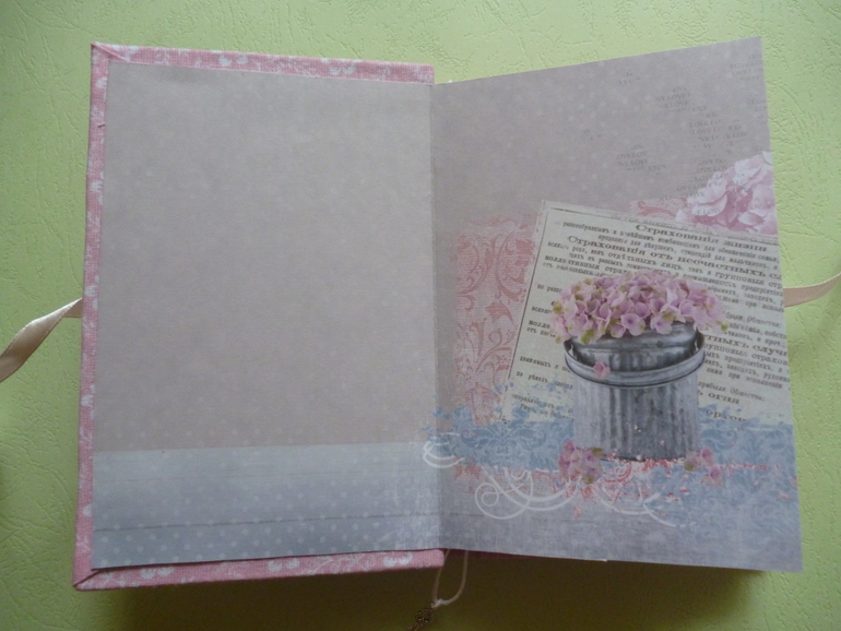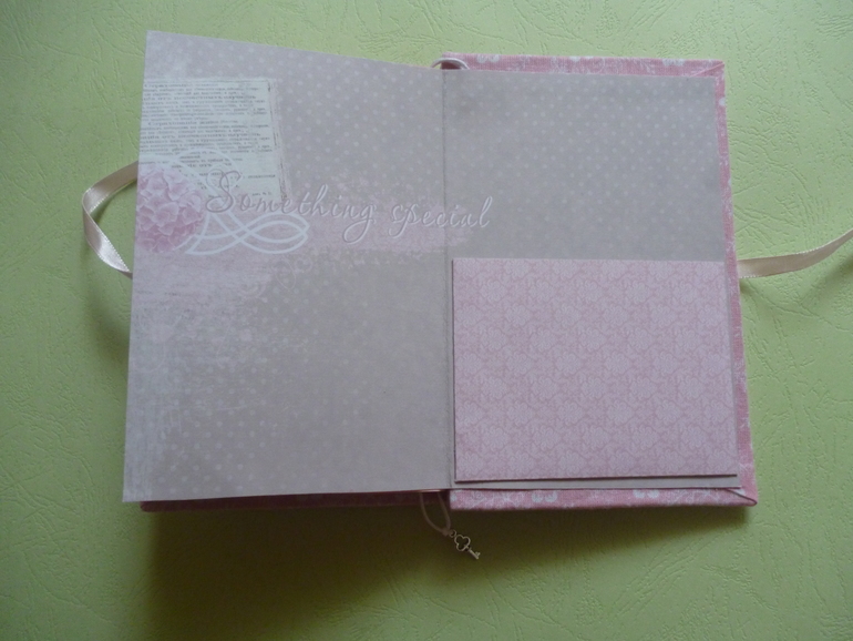 Блокнот с белыми и розовыми листами, 192 страницы, мягкая тканевая обложка, сделан "с нуля", коптский переплет, на обложке девочка из полимерной глины ручной работы, закрывается на ленту, есть закладка с ключиком, на заднем форзаце бумажный кармашек